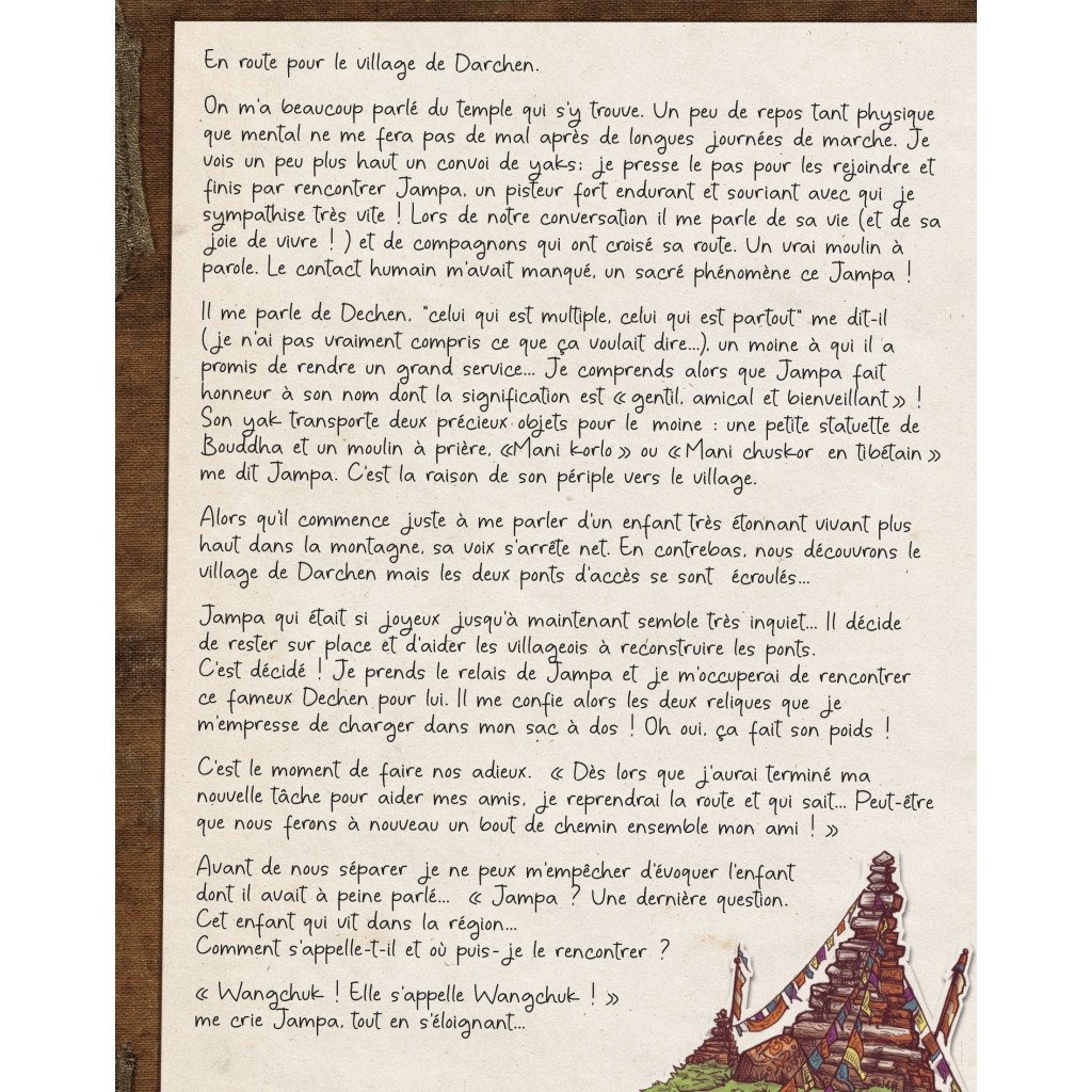 à partir de 8 ans moins de 30 min 1 à + de 10 joueur(s) Cette extension du jeu Trek 12 repose sur le contenu d'un carnet de voyage découvert lors de votre séjour au Temple du Machapuchare. Perdu par Max, alpiniste renommé, lors d'une ascension durant laquelle il dût se séparer d'une partie de son matériel. Vous tombez sur ce calepin finement illustré et vous décidez de revivre l'aventure de Max !Vous remonterez le temps en suivant les traces d'un autre, vous vivrez une expérience personnelle ponctuée de rencontres... La difficulté croissante de cette expédition inédite vous fera-t-elle flancher ?Ouvrez la première page dès maintenant et découvrez l'aventure qui vous attend ! Points forts cette extension de Trek 12:NarratifDécouverteNouvelles mécaniquesContenu de l'extension1 Bloc de 50 Feuilles 1 Feuille de Règles 3 Enveloppes contenant des nouvelles ascensions pour jouer à Trek 12...