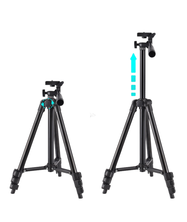 Notre trépied est en alliage d'aluminium, très solide et stable. Conception de pieds antidérapants pour maintenir le trépied stable. Le poids maximal de la charge est de 1 kg. Rotule pivotante à 360 degrés qui vous offre une vue panoramique.