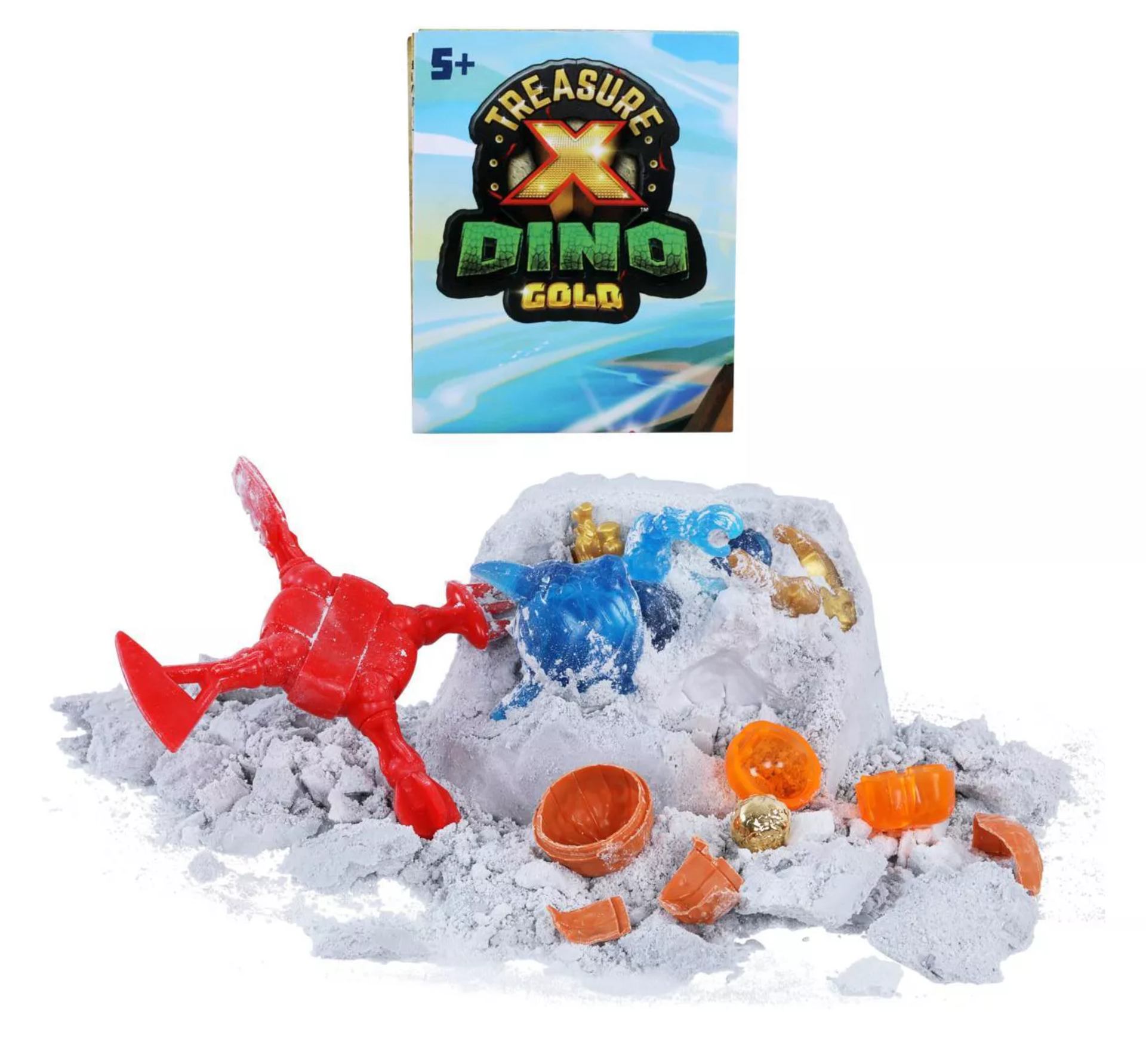 Découvre 10 niveaux daventure avec Trésor X LOr Des Dinos ! Déterre et sauve les chasseurs de dinosaures miniatures et trouve différents trésors cachés dans un fossile !