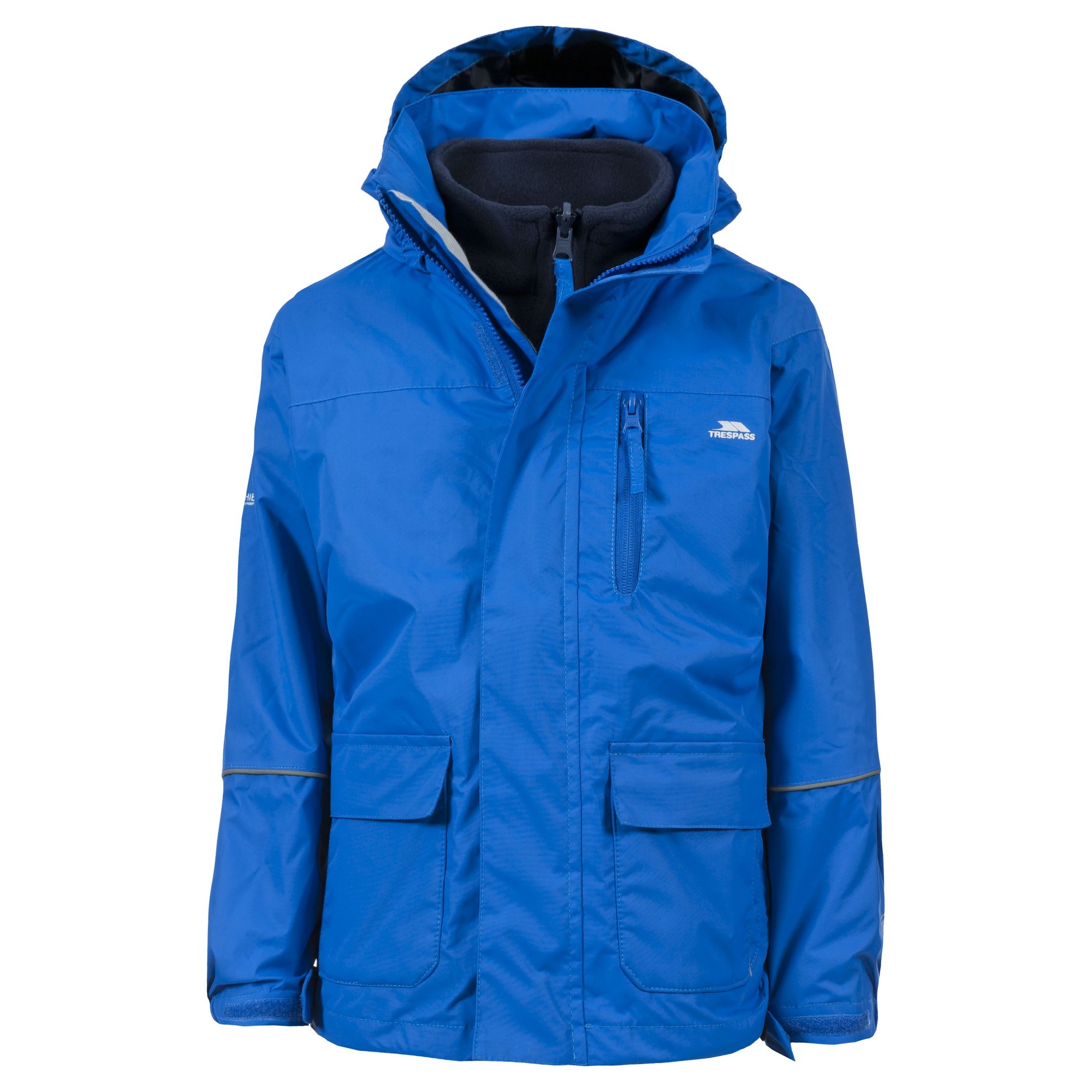 Pour enfants. 3-en-1. Confortable. Chaud. Imperméable 2 000 mm. Coutures étanches. 2 poches à rabat. 1 poche sur poitrine. Poignets ajustables à scratch. Capuche pliable. Cordon de serrage dans ourlet bas. Intérieur polaire. Tour de poitrine (cm): 2-3 ans (53), 3-4 ans (56), 5-6 ans (61), 7-8 ans (66), 9-10 ans (71), 11-12 ans (79). Composition: 100% polyester.