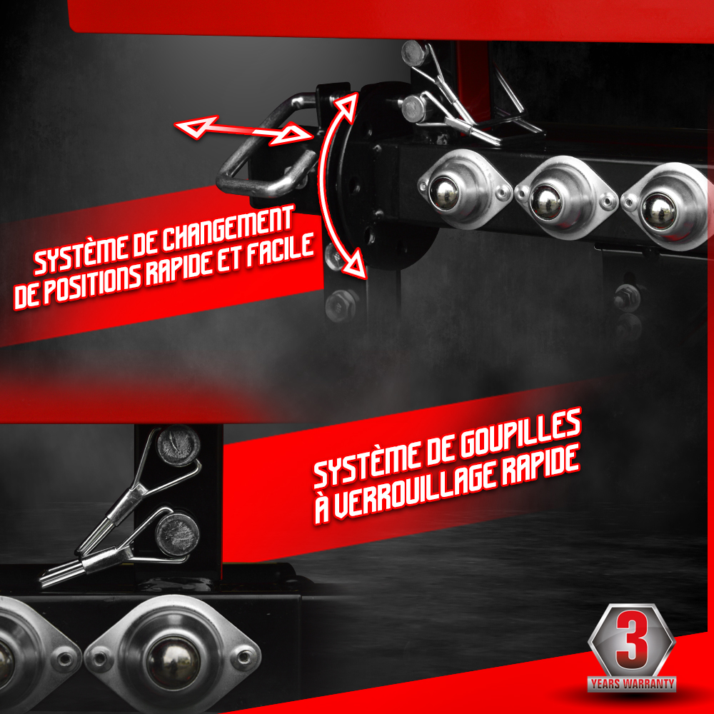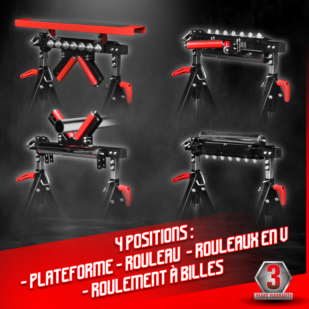 - 4 positions : plateforme - rouleau - rouleaux en V - roulement à billes