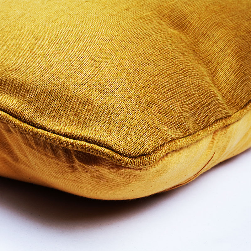 Coussin de couleur jaune, composé d'une alliance de deux matières végétales, le coton et le jute. Sa matière et son coloris offre un côté naturel et brut très actuel en y créant une ambiance ethnique chic à votre intérieur.