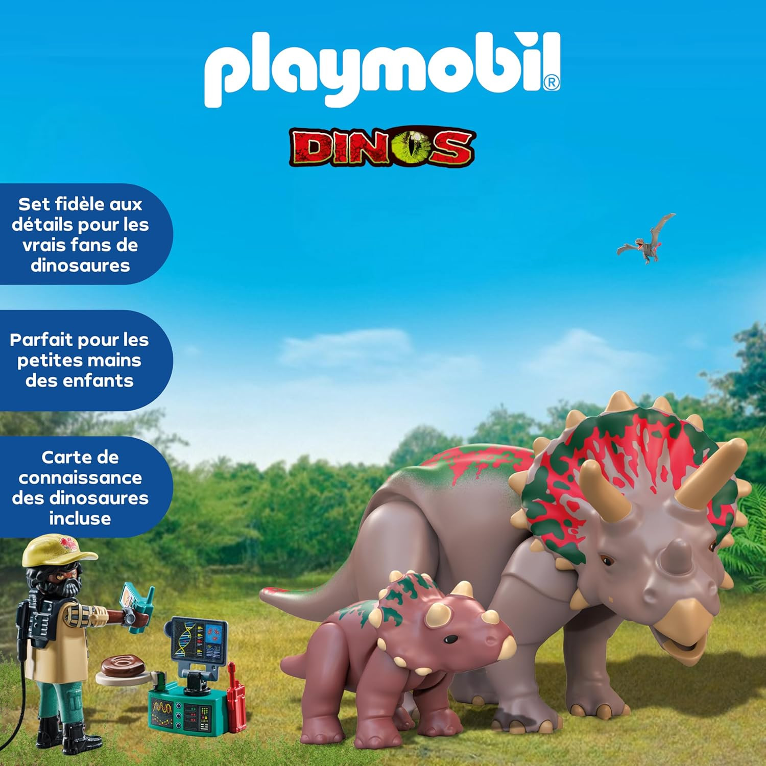 | Plus produit | - Les dinosaures sont articulés et peuvent bouger leurs pattes avant et arrière. Le tricératops adulte peut également ouvrir sa mâchoire inférieure. |