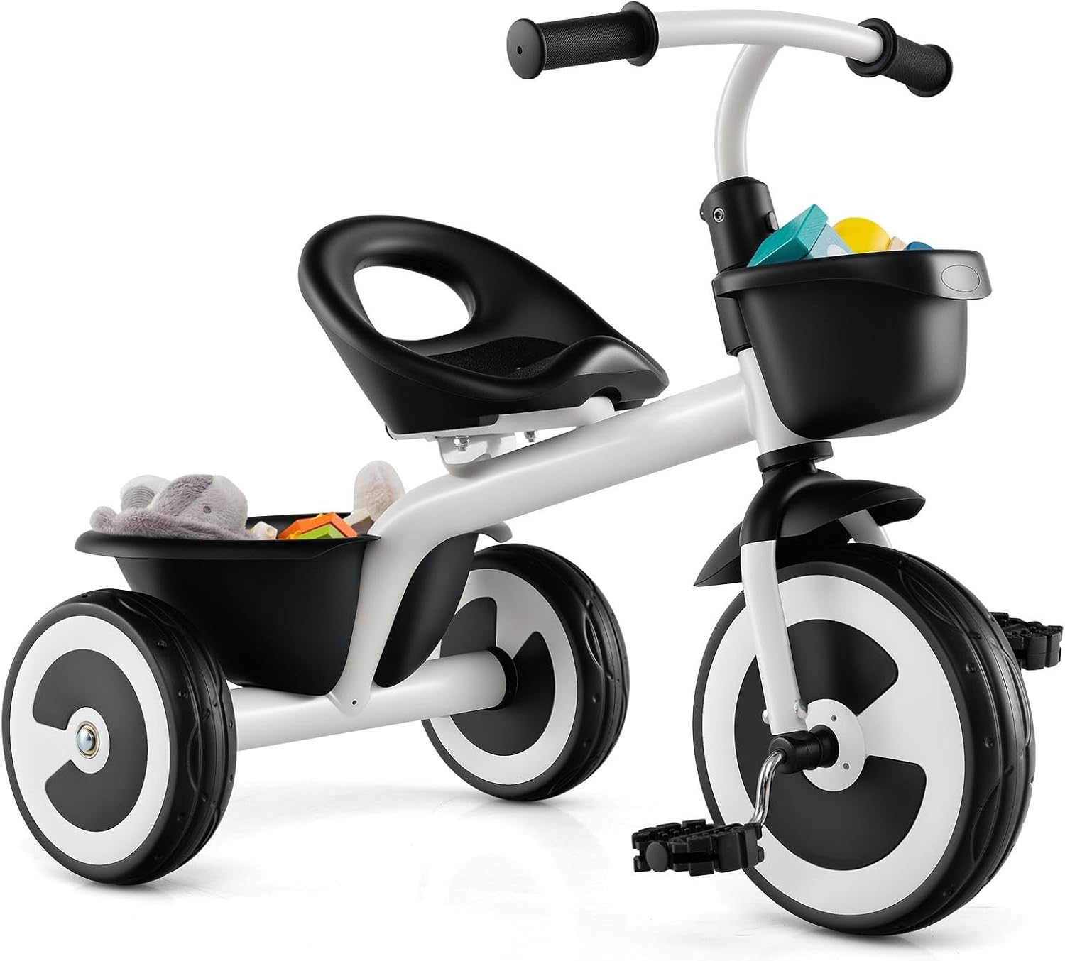 Tricycle enfants de 1,5-5 ans, vélo draisienne bebe avec siège réglable à 2 niveaux,pédales,blanc