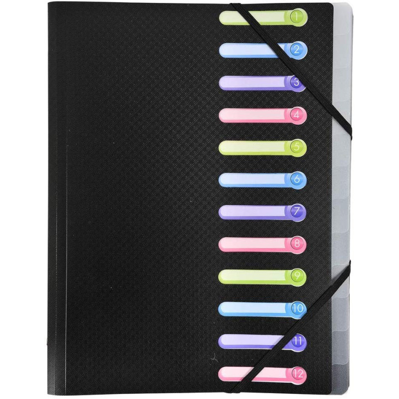 Trieur 3 rabats PP 12 compartiments Opak noir – Exacompta.