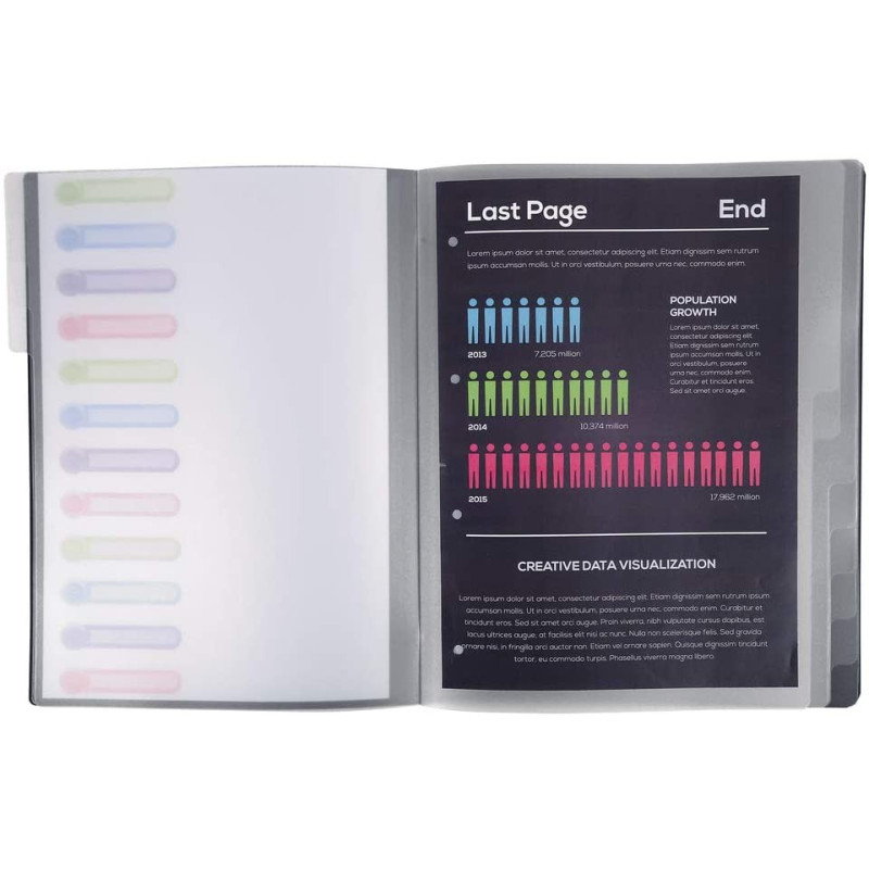 - Les compartiments peuvent être personnalisés grâce aux fenêtres découpées dans la couverture
