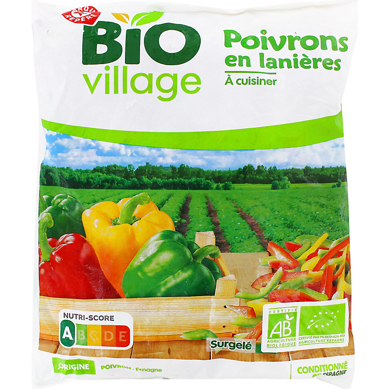Poivrons en lanières issus de l'agriculture biologique, surgelés BIO VILLAGE