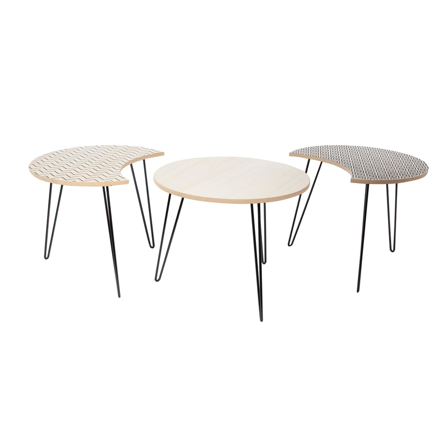 Trio de tables gigognes - Beige Et Noire - H. 36cm