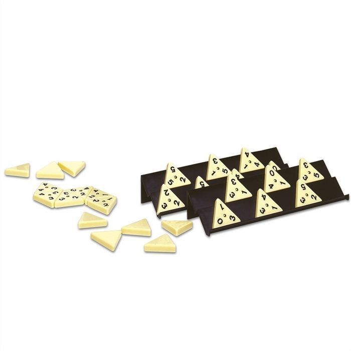 | La boîte contient | - 56 Triominos - 1 sac - 4 réglettes - 1 règle de jeu |