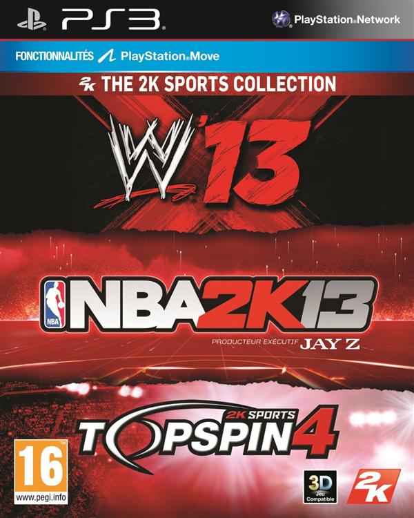 Un cadeau de Noël idéal à budget serré et attractif pour la famille et les fans de sport ! Retrouvez dans un pack trois superbes simulations sportives : - NBA 2K13 : énorme succès mondial de l'année dernière. La licence NBA 2K fait référence sur le marché depuis plusieurs années, sans concurrence. - WWE 13 : un roster gigantesque, un contenu phénoménal, WWE 13 était encore l'année dernière la meilleure simulation de catch du marché - Top Spin 4 : simulation accomplie, référence historique, très fidèle à la réalité.