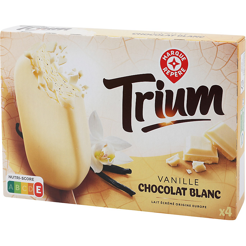 4 bâtonnets de glace à la vanille avec un enrobage au chocolat blanc TRIUM