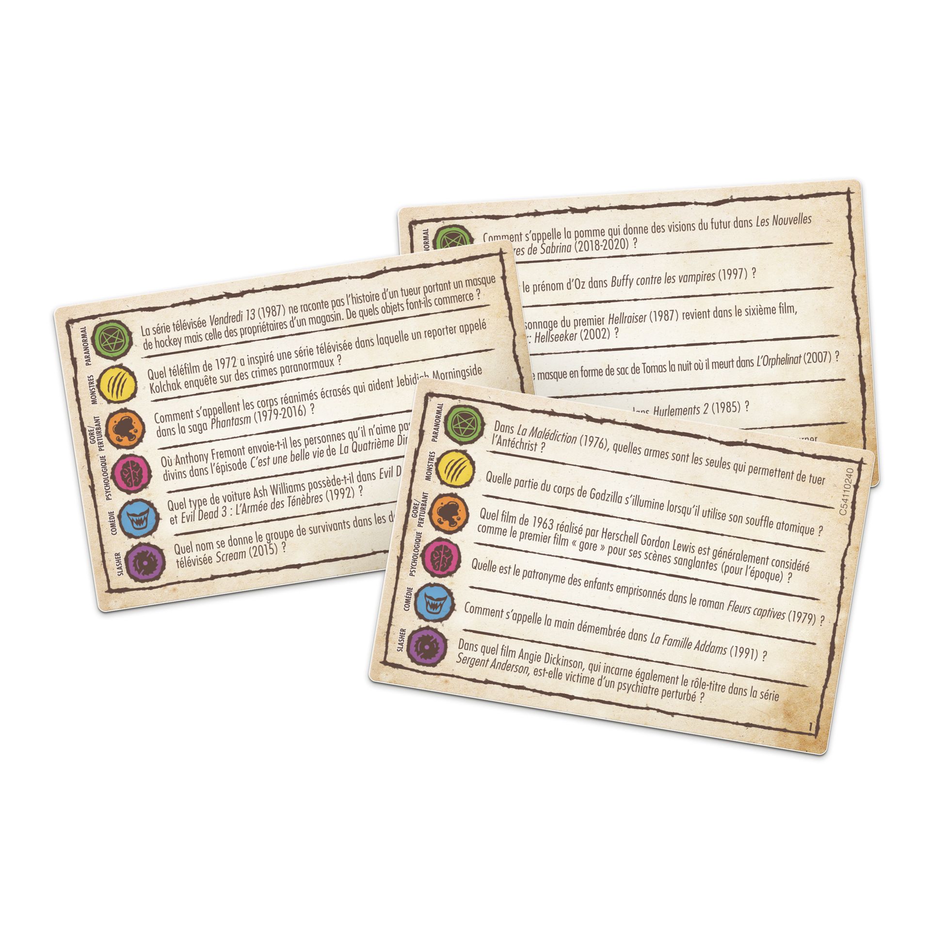Explorez les coins les plus sombres de la pop culture dans ce Trivial Pursuit Edition horreur. Avec 1800 questions, à vous glacez le sang, testez vos connaissances du macabre, en famille ou entre amis. Les questions sont réparties en 6 catégories : paranormal, monstre, gore/inquiétant, psychologique, comédie, horreur... Arriverez-vous à tenir jusqu'au bout de la partie ?