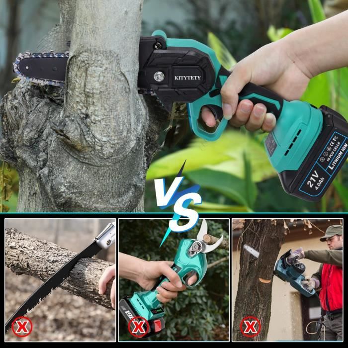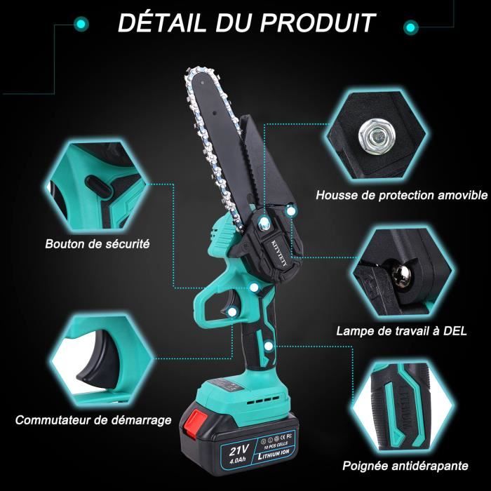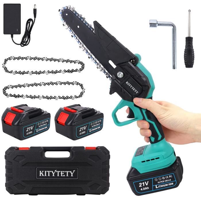 | Libellé | Tronçonneuse Sans Fil KITYTETY Portable à une Main de 6 Pouces - 2 Batteries Rechargeables pour Coupe Du Bois, La Cour Et Le Jardin |