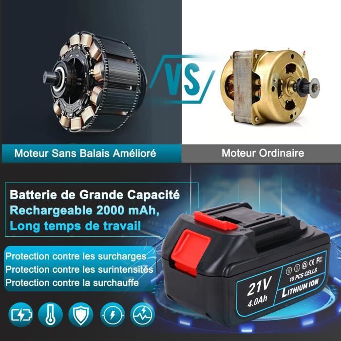 ⚒【Système Dynamique Fort】Elle adapte un moteur en cuivre pur et une chaîne de guidage de haute qualité qui a subi un processus de refroidissement en profondeur pour assurer une coupe en douceur. ⚒【Conception de sécurité】Avec verrouillage de sécurité pour éviter tout démarrage accidentel. Équipée d'une protection anti-éclaboussures amovible et de 2 batteries au lithium rechargeables de grande capacité