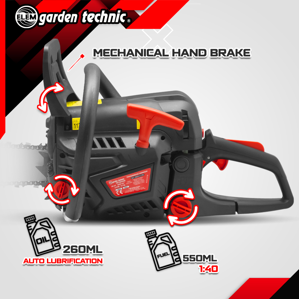 Cette tronçonneuse thermique 58 CC de la marque Elem Garden Technic est idéale pour l'abattage des arbres de petites et moyennes tailles, le débitage du bois de chauffage ou tout autres travaux forestiers. Équipé d'un guide de 51.5 cm, cet outil atteste d'une excellente qualité de coupe.