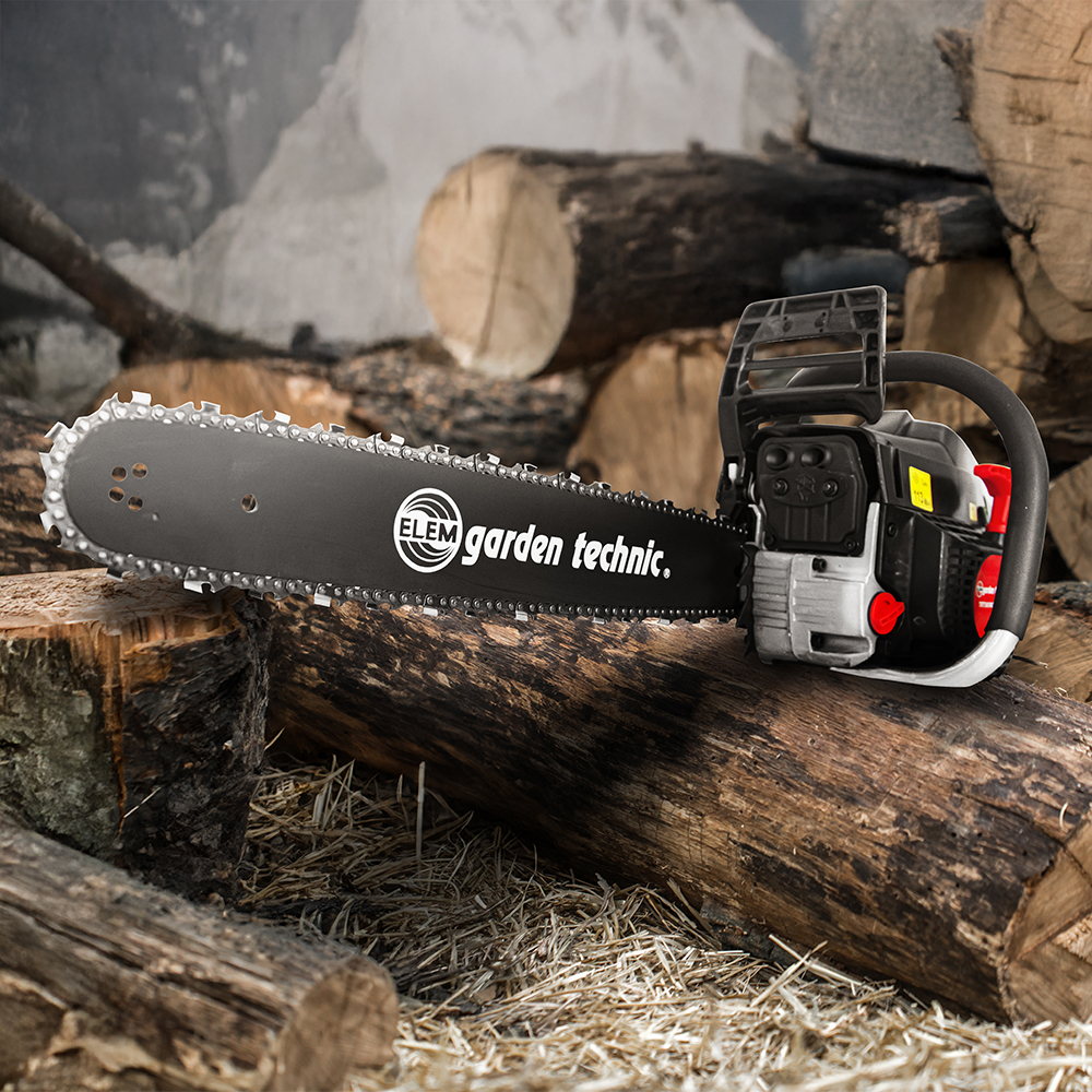 Cette tronçonneuse thermique 58 CC de la marque Elem Garden Technic est idéale pour l'abattage des arbres de petites et moyennes tailles, le débitage du bois de chauffage ou tout autres travaux forestiers. Équipé d'un guide de 50 cm, cet outil atteste d'une excellente qualité de coupe. Elle est livrée avec une deuxième chaîne offerte Cette tronçonneuse thermique est garantie 3 ans. Caractéristiques : - Cylindrée : 58 CC - 2 temps ratio essence : huile 40 : 1 (95/98 oct : SAE 10W-30) - Puissance moteur : 2.4 Kw - Régime moteur max : 8500 t/min - Capacité du réservoir d'essence : 560 ml - Capacité du réservoir d'huile: 260 ml - Longueur du guide: 500 mm - Longueur de coupe: 450 mm - Vitesse de chaîne: 24.7 M/sec - Poids avec guide, chaîne et plein d'essence: 7.5kg - Chaîne 0.325'' - Jauge spécifiée : 0.058mm - Graissage automatique de la chaîne - Livré avec une deuxième chaîne - Garantie : 3 ans