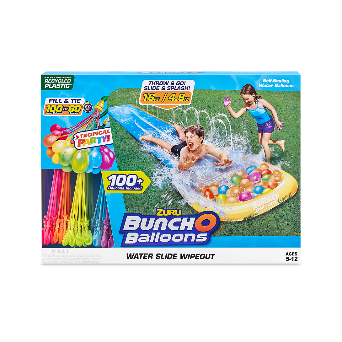 Tropical Party Tapis de glisse - 100 bombes à eau- Place à l’été ! Viens t’amuser sur le tapis de glisse Bunch O Balloons Tropical Party ! Amuse-toi à glisser sur l'eau et à atterrir dans des centaines de bombes à eau qui se remplissent rapidement et se ferment tout seuls. Une combinaison parfaite et riche en sensations fortes pour profiter d’un été rigolo et rafraîchissant !