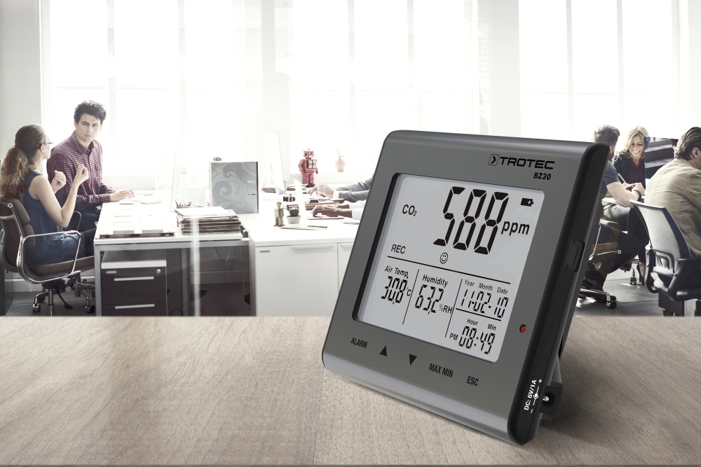 Présent en concentration trop élevée dans l’air, le CO2 cause de la fatigue et une baisse de la concentration. Ce désagrément se fait particulièrement sentir dans les bureaux et les établissements scolaires où l’on oublie fréquemment de renouveler l’air. Le BZ30 permet d’analyser ce phénomène et d'aérer dès qu'il est nécessaire.