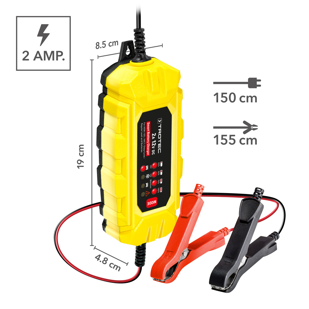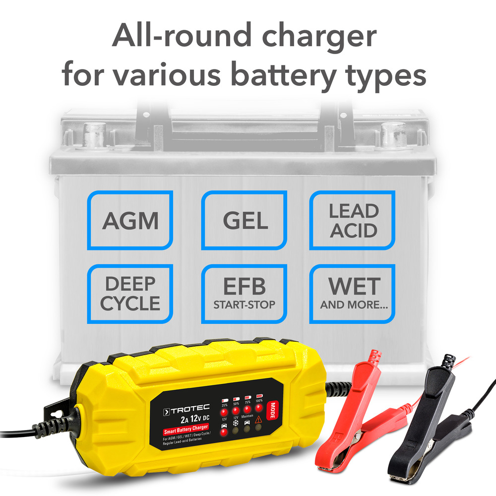 TROTEC Chargeur de batterie PBCS 2A charge de batterie voiture moto chargeur universel