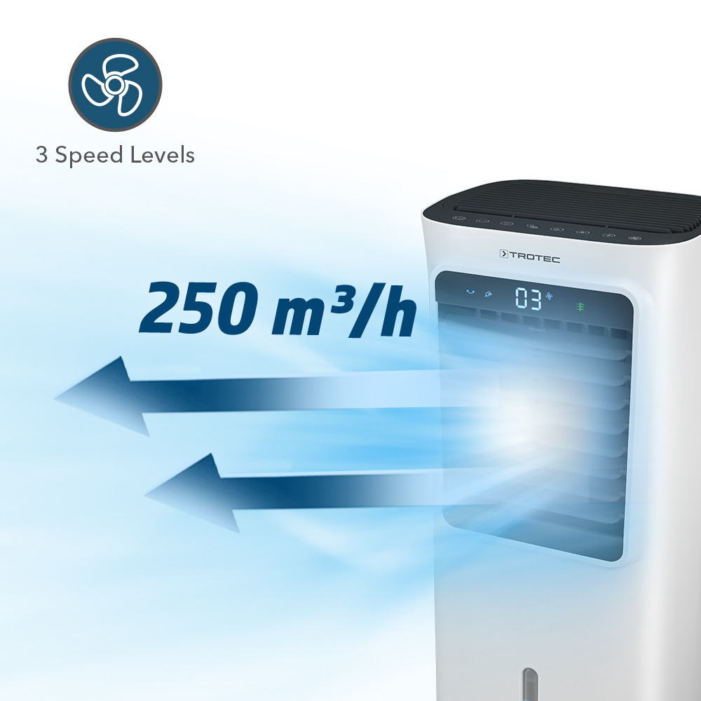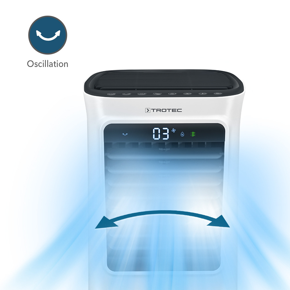 TROTEC Rafraîchisseur d'air aircooler et purificateur d’air PAE 35 HEPA pour un refroidissement naturel de la peau tout en améliorant le climat de la pièce.