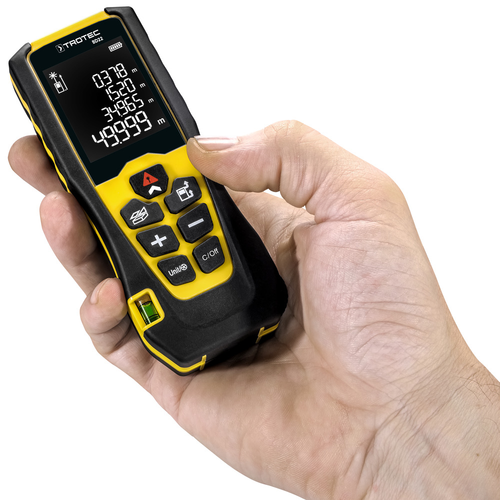 Facile à utiliser, doté d'une grande fonctionnalité et donc adapté à une multitude d'applications et d'utilisations de mesure différentes. C'est ainsi que l'on peut résumer les caractéristiques avantageuses du télémètre laser BD22, très maniable et ne pesant que 130 g. Avec ses possibilités d'application étendues, il est recommandé aussi bien aux architectes, aux ingénieurs qu'aux artisans (par ex. poseurs de sols, peintres et vernisseurs, constructeurs à sec, etc.) et aux bricoleurs ambitieux.