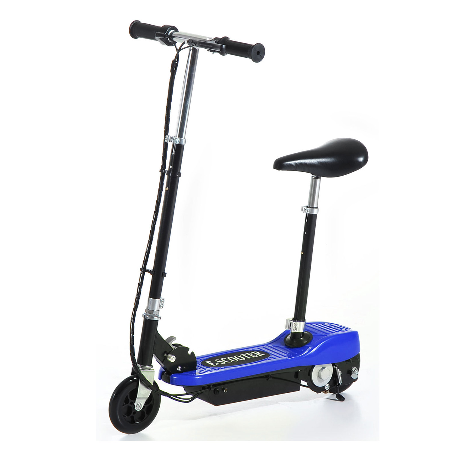 | Libellé | Trottinette électrique 120 W pliable pour enfant de 7 à 12 ans hauteur guidon et selle réglable 10 Km/h max. 2 roues PU bleu |