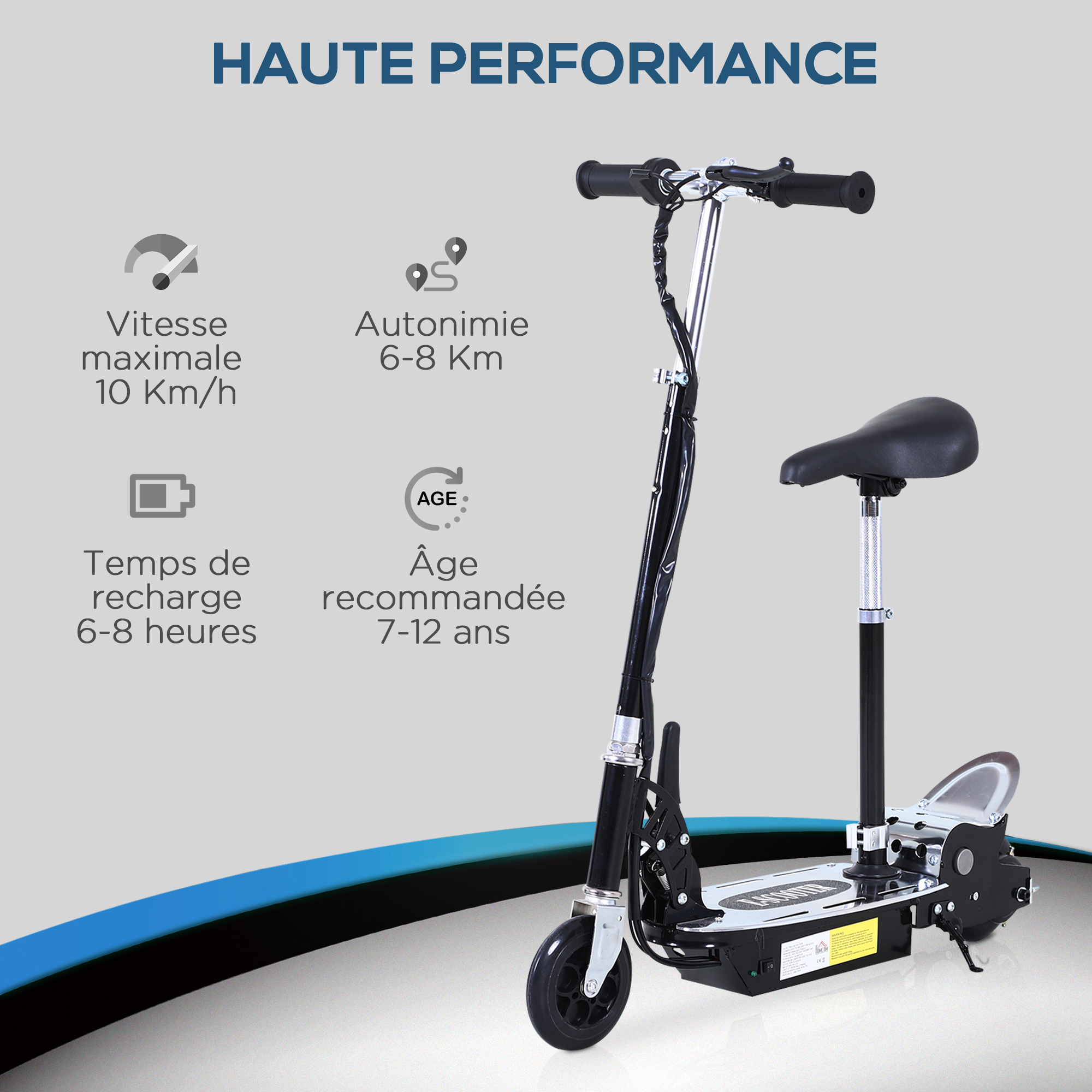 | Libellé | Trottinette électrique 120 W pliable pour enfant de 7 à 12 ans hauteur guidon et selle réglable 10 Km/h max. noir |