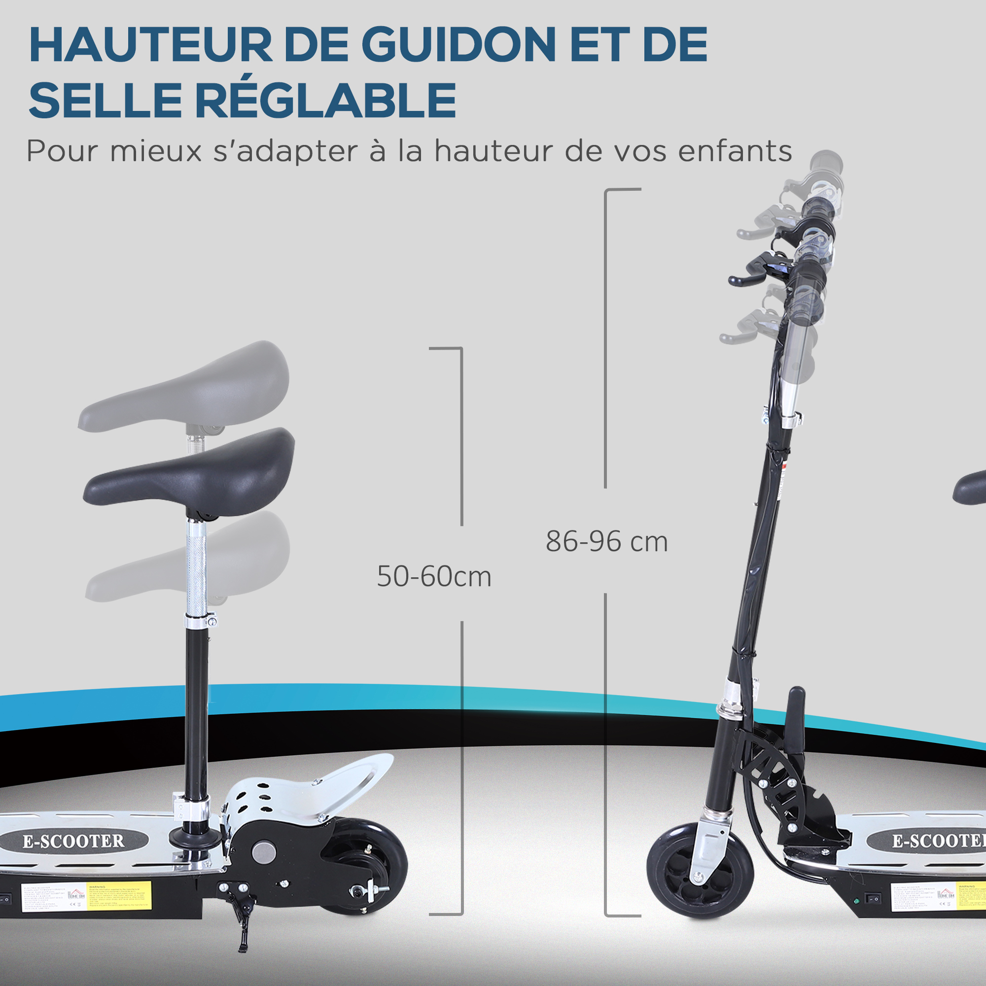 Trottinette électrique 120 W pliable pour enfant de 7 à 12 ans hauteur guidon et selle réglable 10 Km/h m