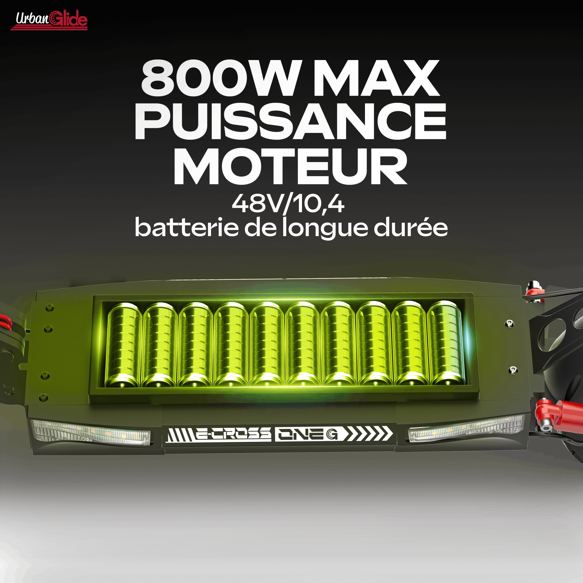 La trottinette électrique UrbanGlide ECROSS se distingue par son design dynamique et sa conception robuste, pensée pour les utilisateurs exigeants. Adaptée aussi bien aux trajets urbains qu'aux parcours plus techniques, elle combine style, solidité et polyvalence.