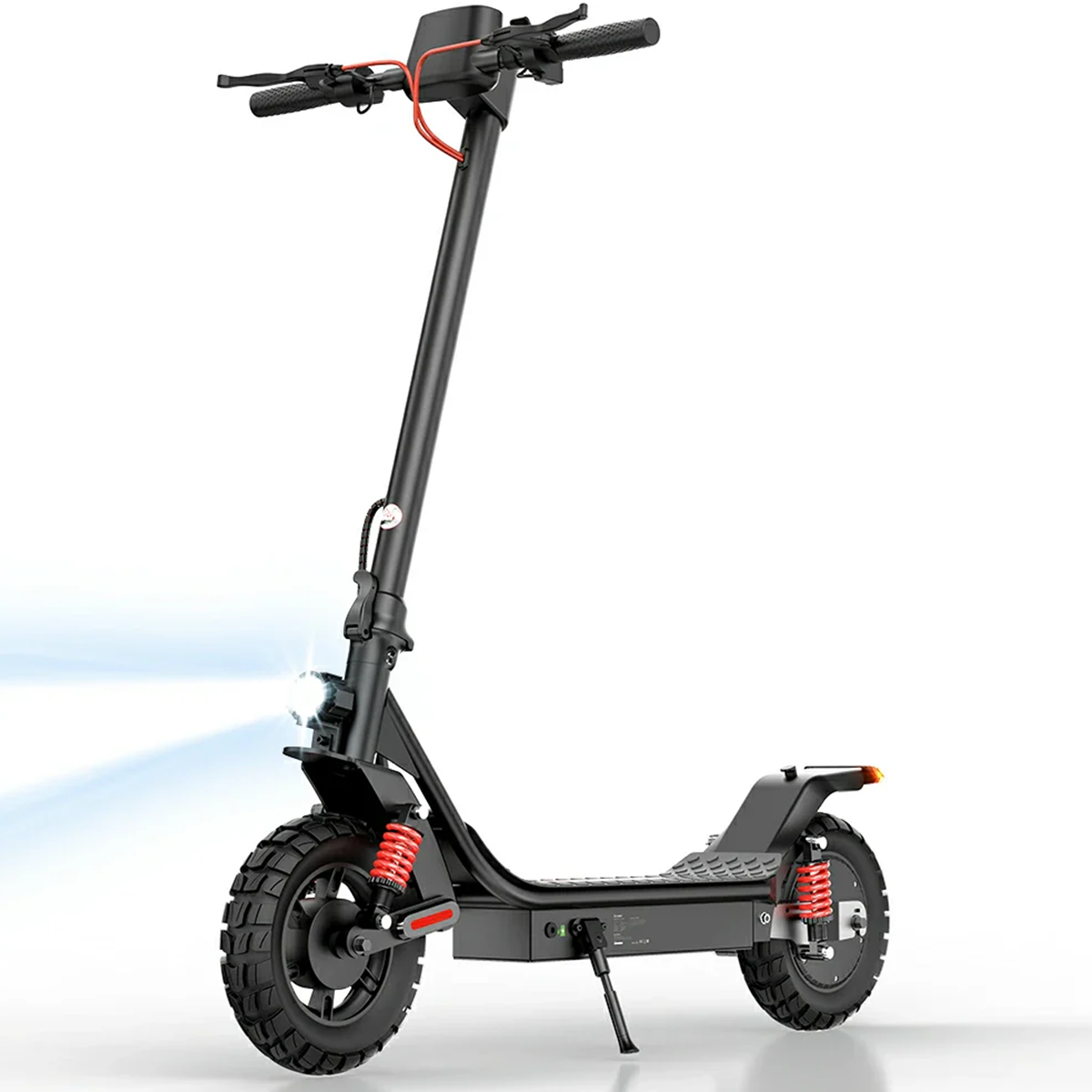 Les pneus pneumatiques de 10 pouces et les amortisseurs à double ressort (avant et arrière) offrent une conduite en douceur, même sur des surfaces accidentées. Le scooter dispose également d'un système de freinage électronique EBAS et de frein à disque fiable pour une puissance de freinage efficace.