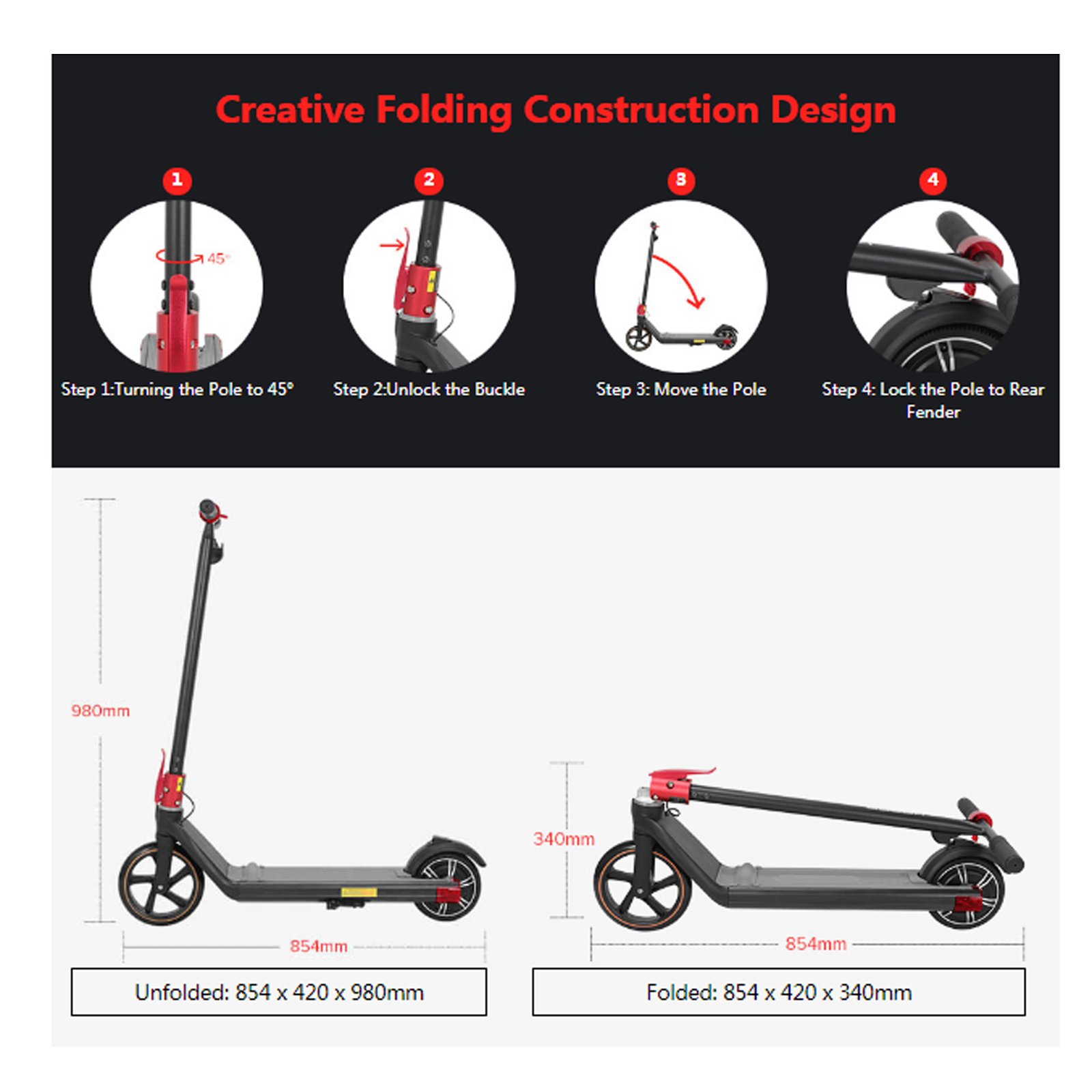 - Taille pliée : 854 x 420 x 340 mm