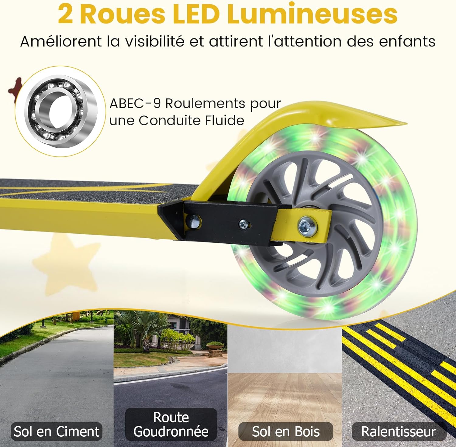 | Libellé | Trottinette enfant 2 roues, patinette enfant pliable, scooter enfant kick avec LED lumière, hauteur réglable (Jaune) |