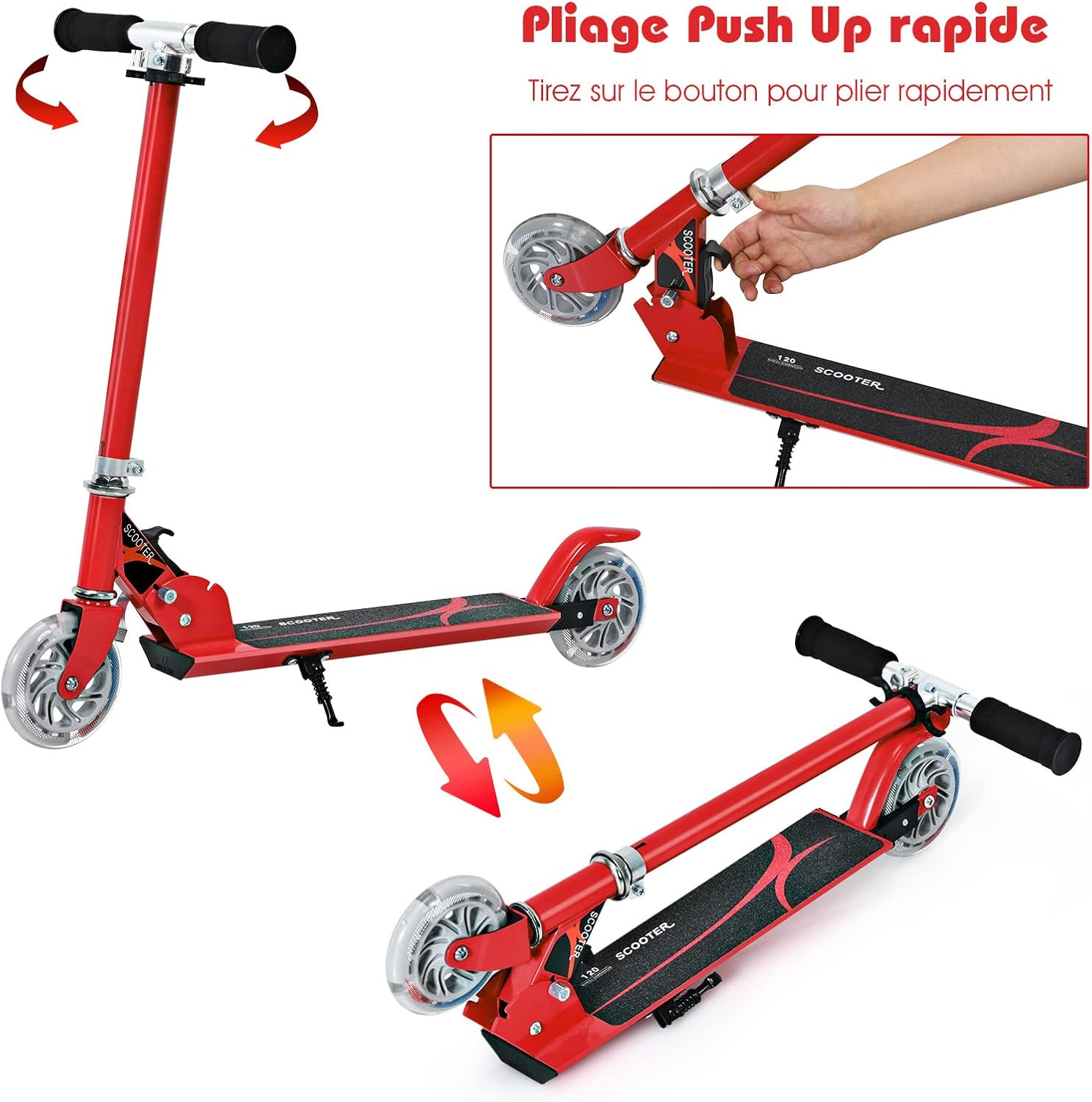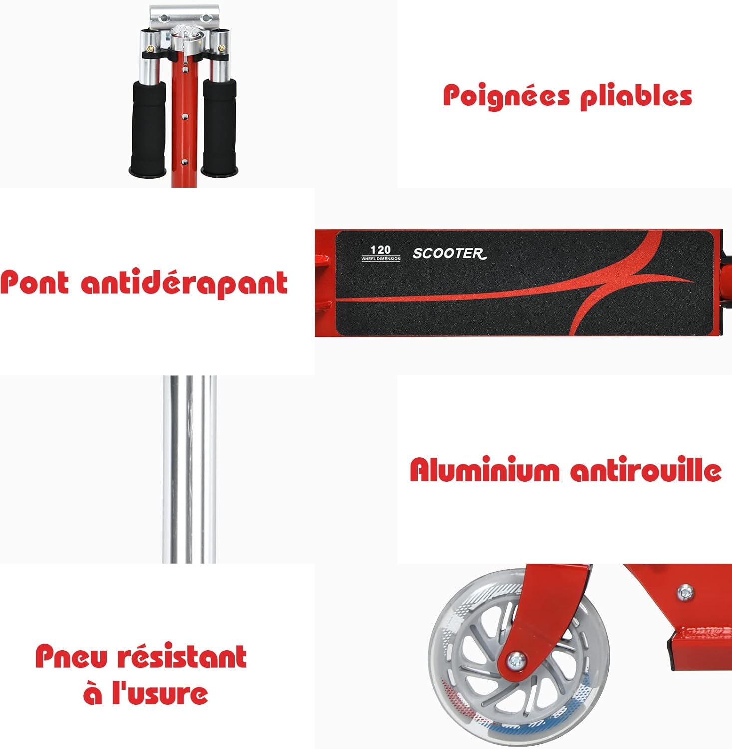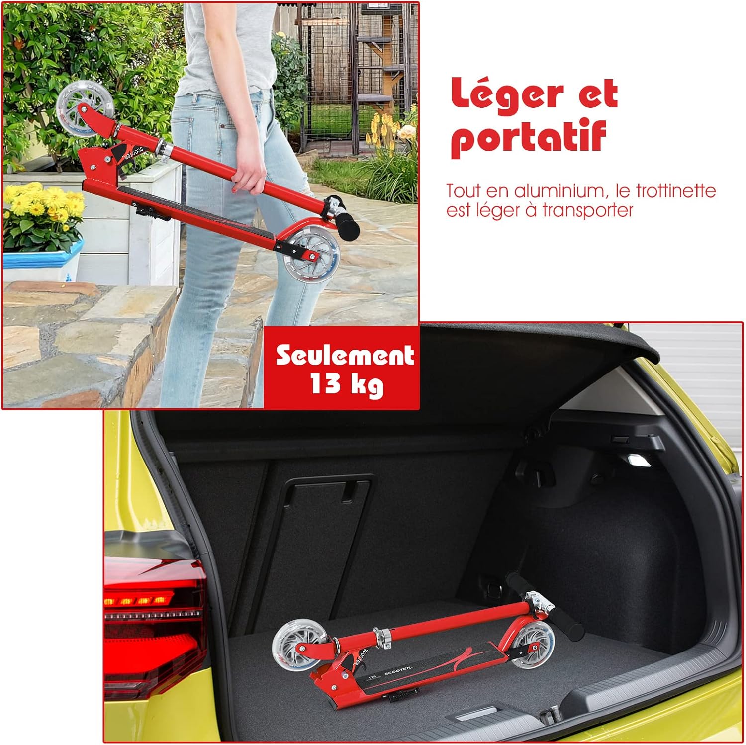 | Libellé | Trottinette enfant 2 roues, patinette enfant pliable, scooter enfant kick avec LED lumière, hauteur réglable (Rouge) |