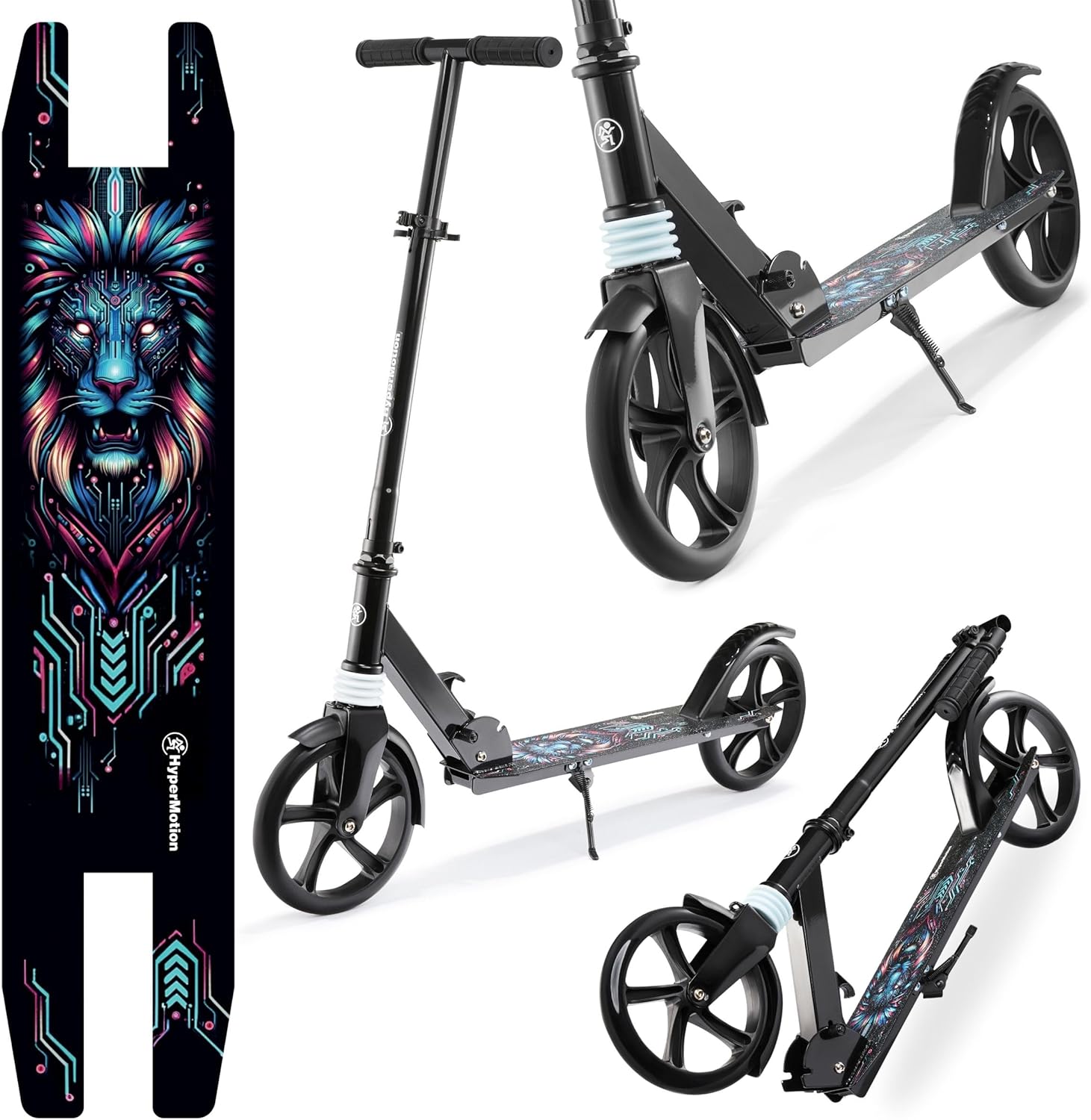 Trottinette à deux roues pour enfant +6ans, adolescents et adultes - avec amortisseur - HyperMotion CITY SWIFT Digital lion - jusqu'à 100kg