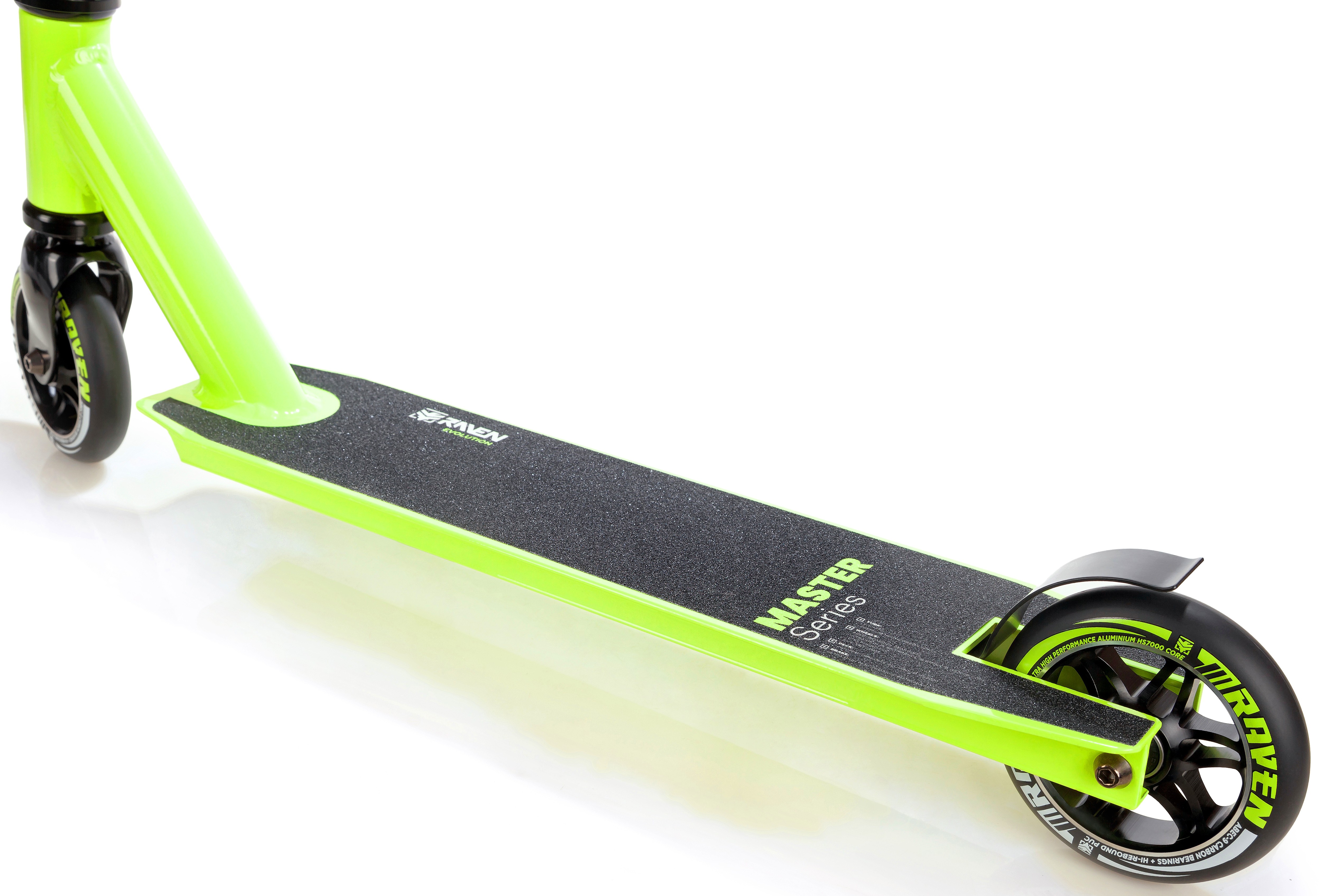 Le plateau en aluminium haute performance HS7000 offre une plateforme stable, avec une surface antidérapante pour une sécurité renforcée lors des figures. Dotée d'un frein en acier au manganèse ultra performant, la Master 110mm RAVEN offre une sécurité maximale lors des arrêts, même à haute vitesse.