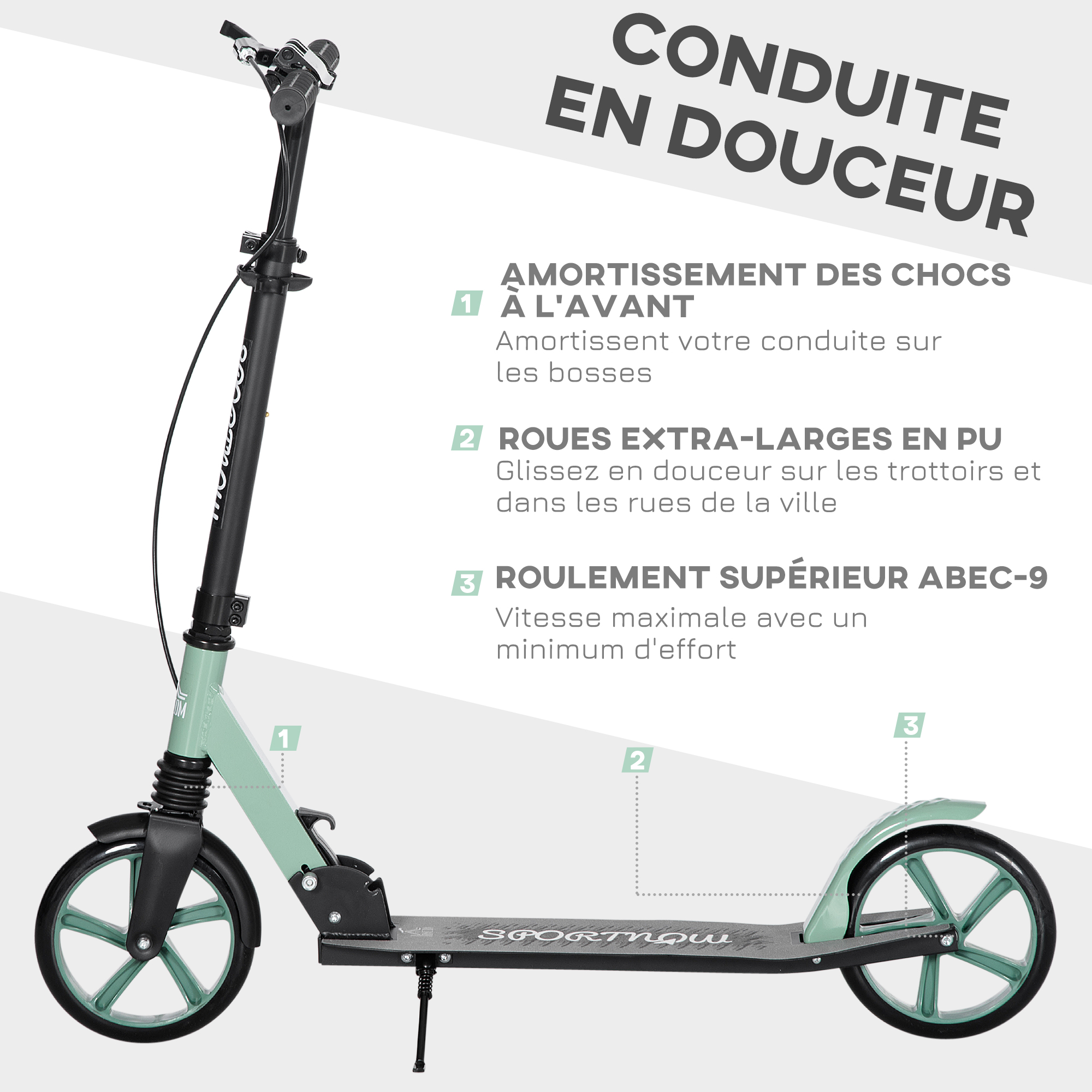 Trottinette pliable adulte béquille double frein amortisseur hauteur guidon réglable roulement PU abec-9