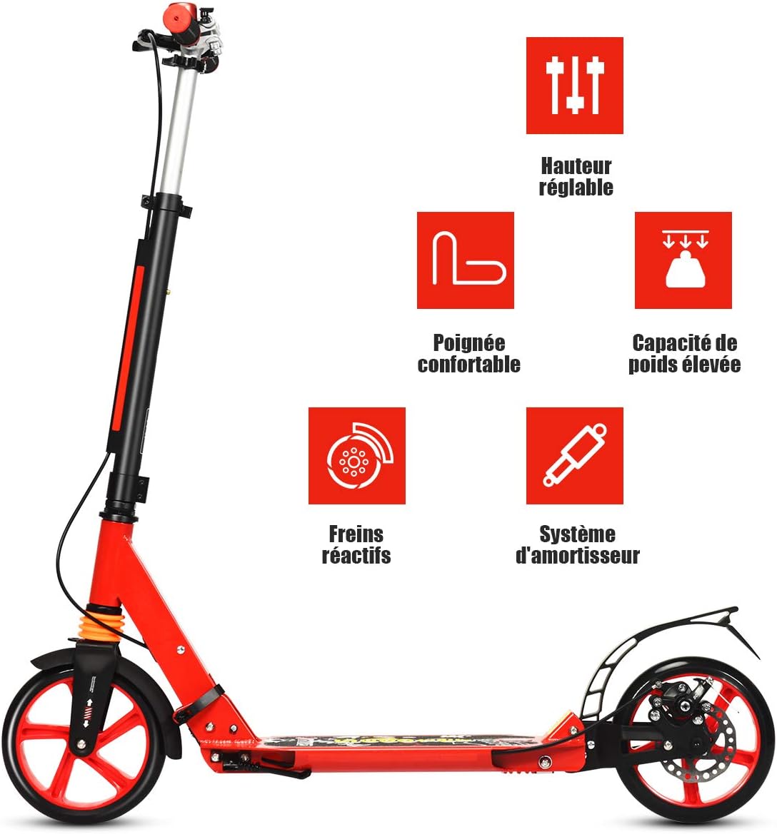 | Libellé | Trottinette pliable avec frein pour enfant 8 ans+, hauteurs réglables, charge 100 kg (Rouge) |