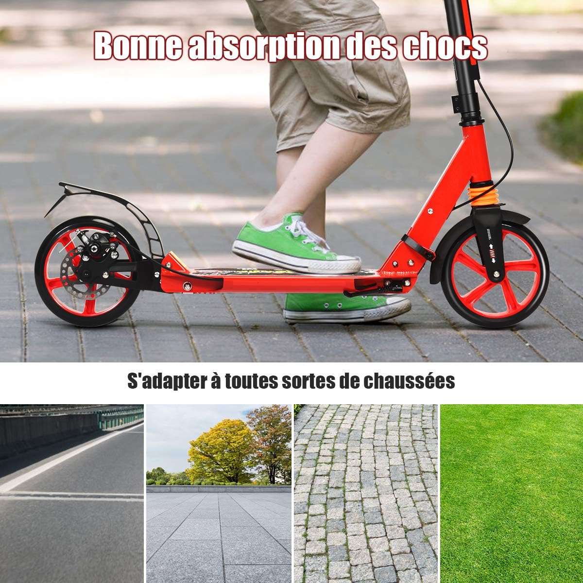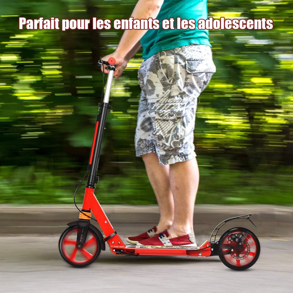 Trottinette pliable avec frein pour enfant 8 ans+, hauteurs réglables, charge 100 kg (Rouge)