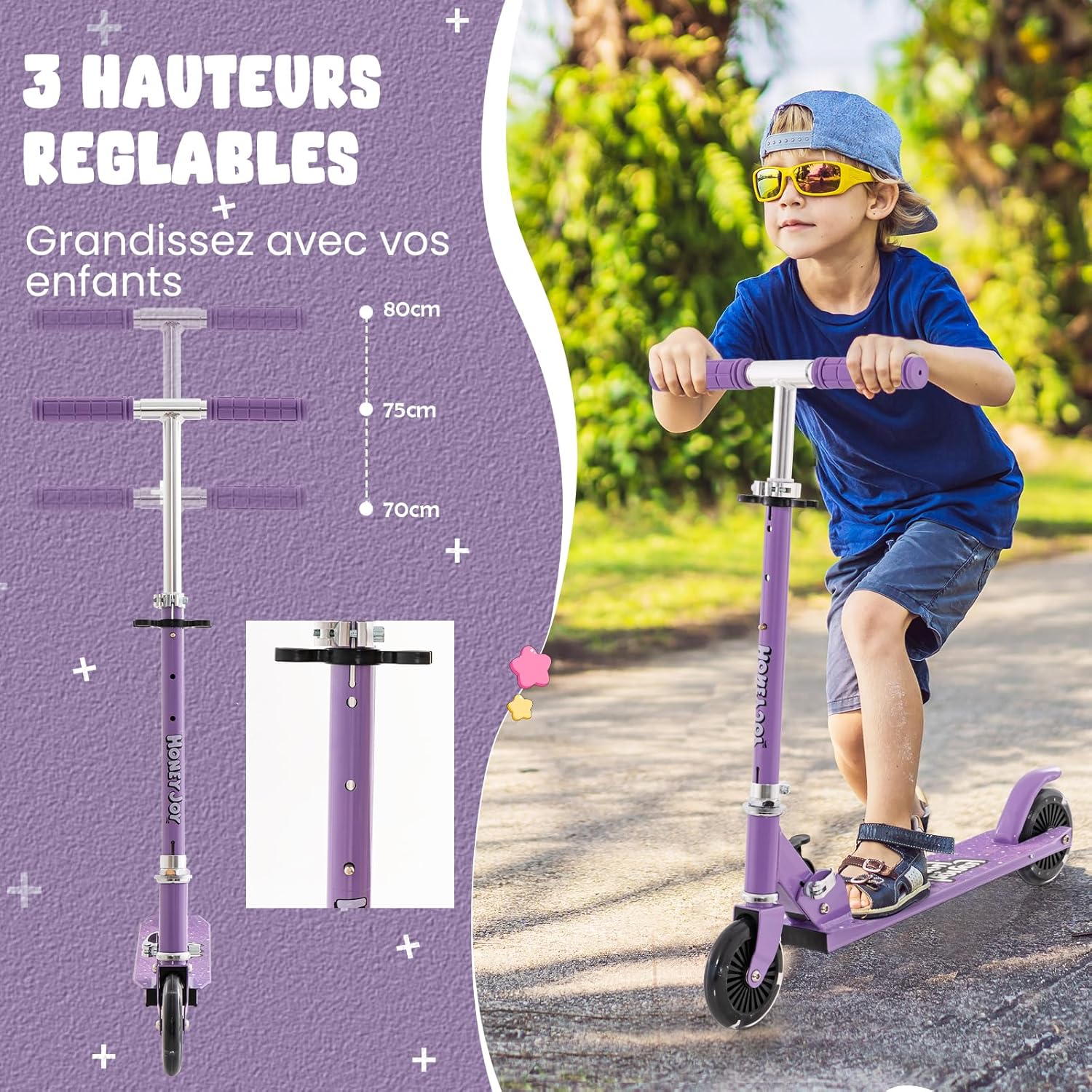 Trottinette pliable pour enfant 3 ans+, roulements ABEC-5, hauteurs réglables, charge 50kg (Violet)