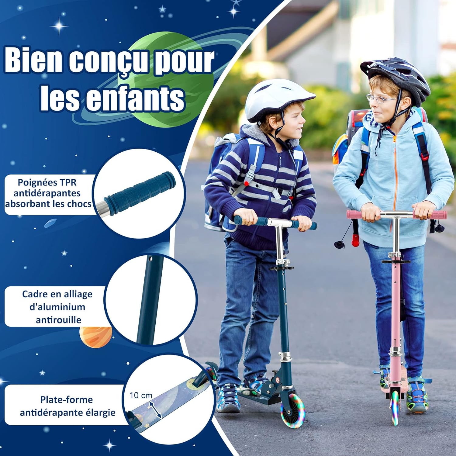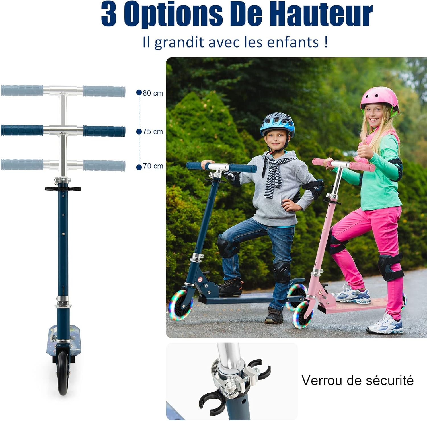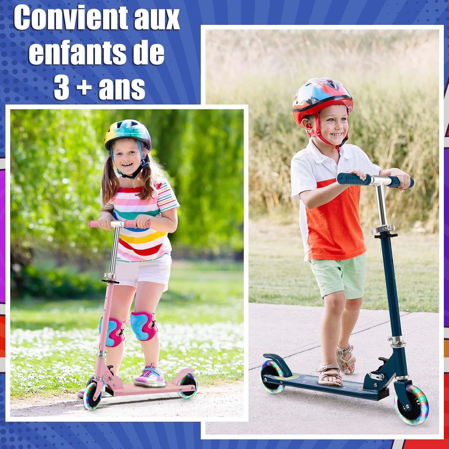 Trottinette pour enfants pliable avec 2 roues lumineuses, guidon réglable alu 3 hauteurs,bleu
