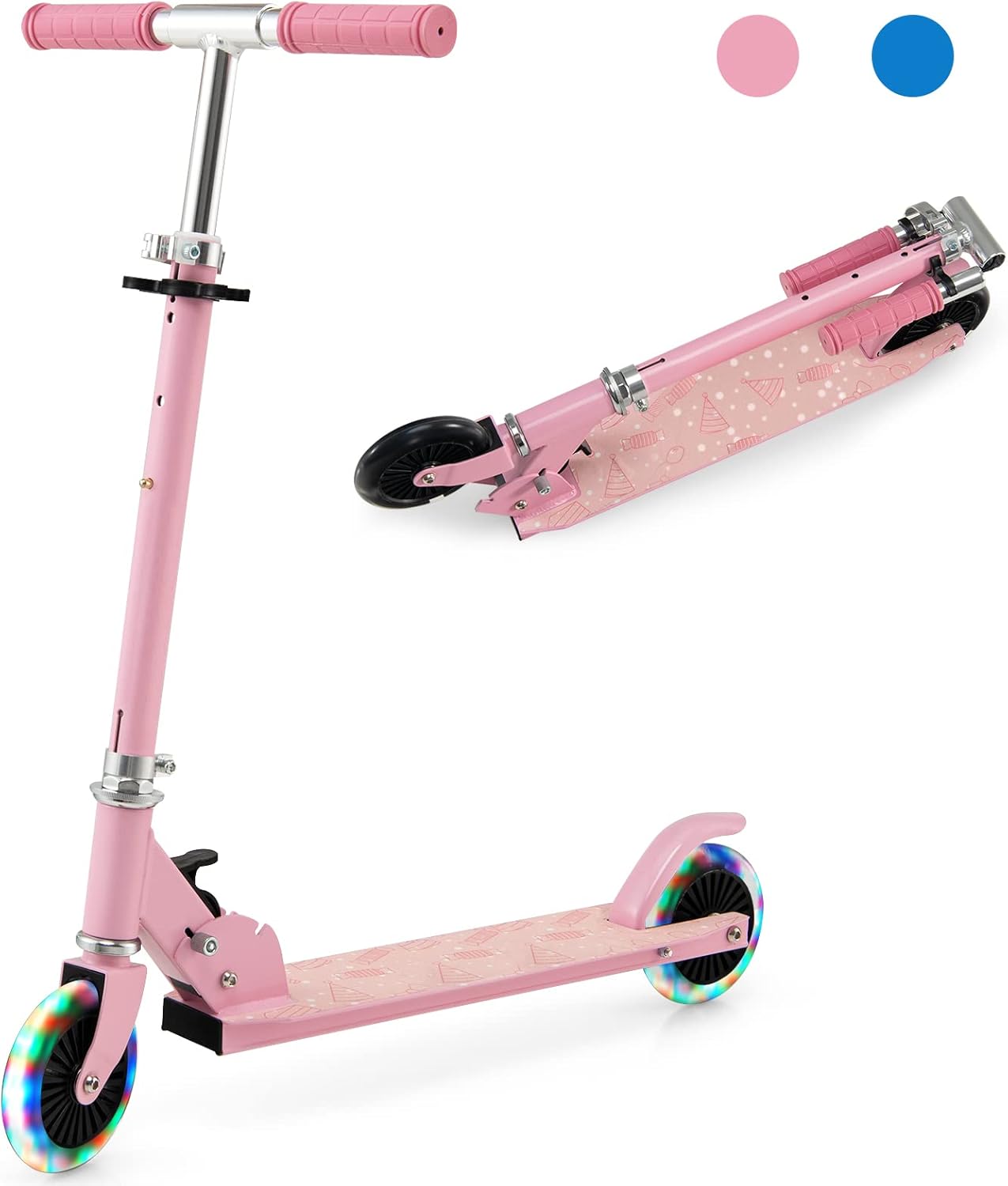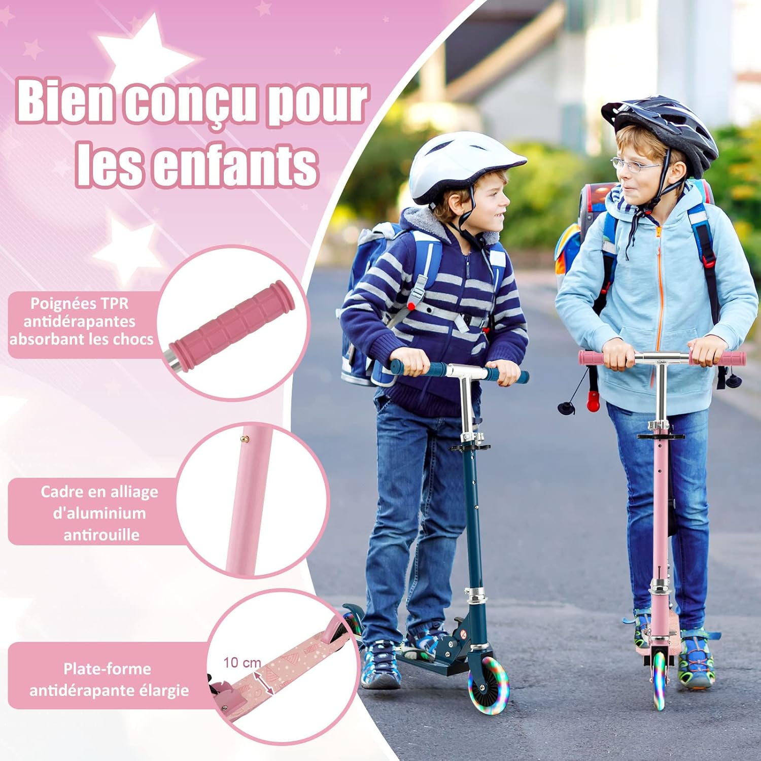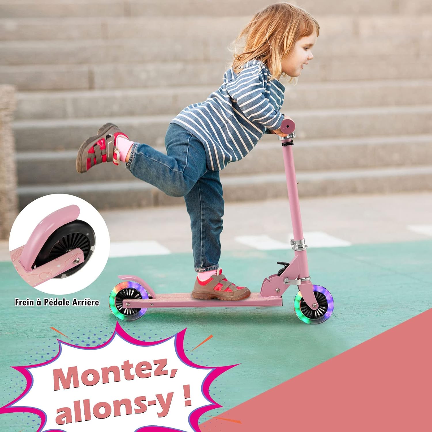 Trottinette pour enfants pliable avec 2 roues lumineuses, guidon réglable alu 3 hauteurs,rose