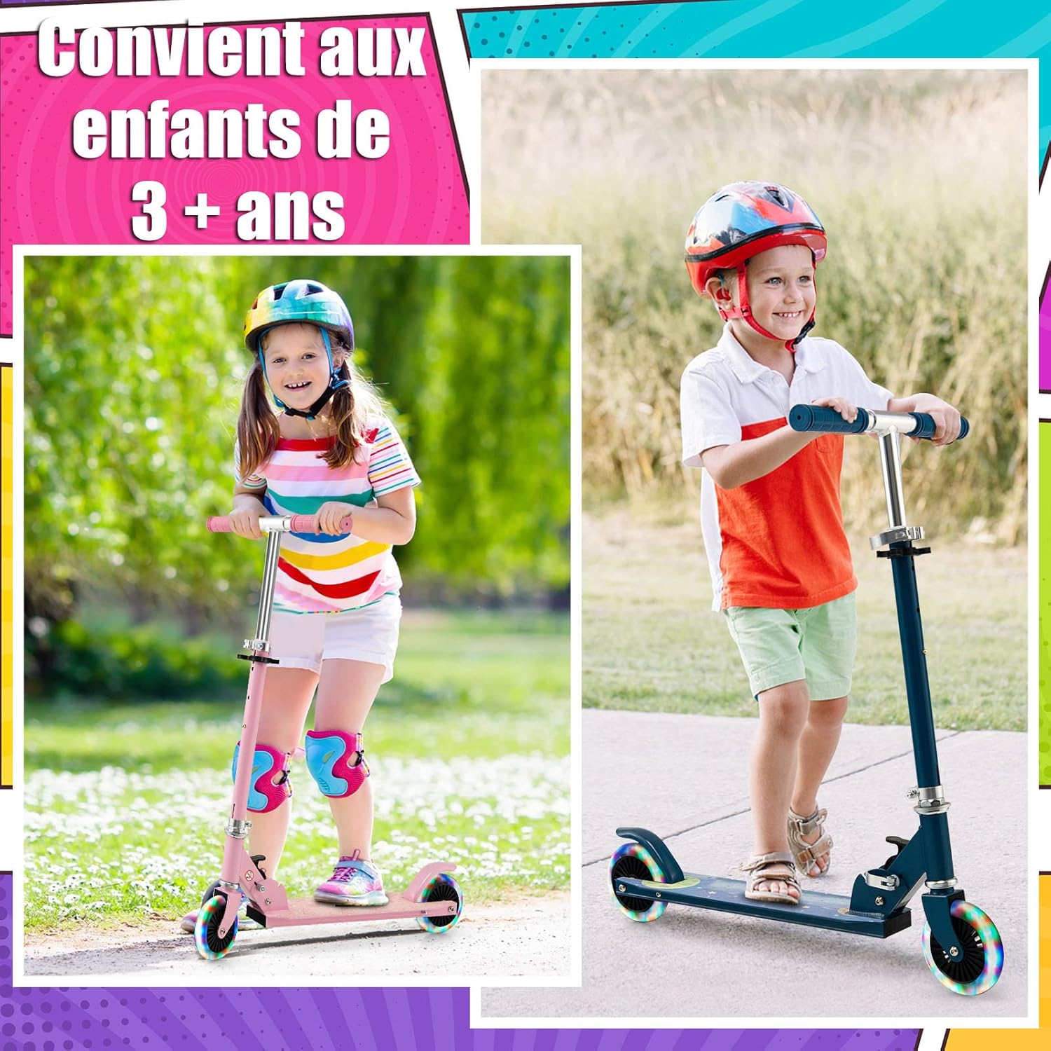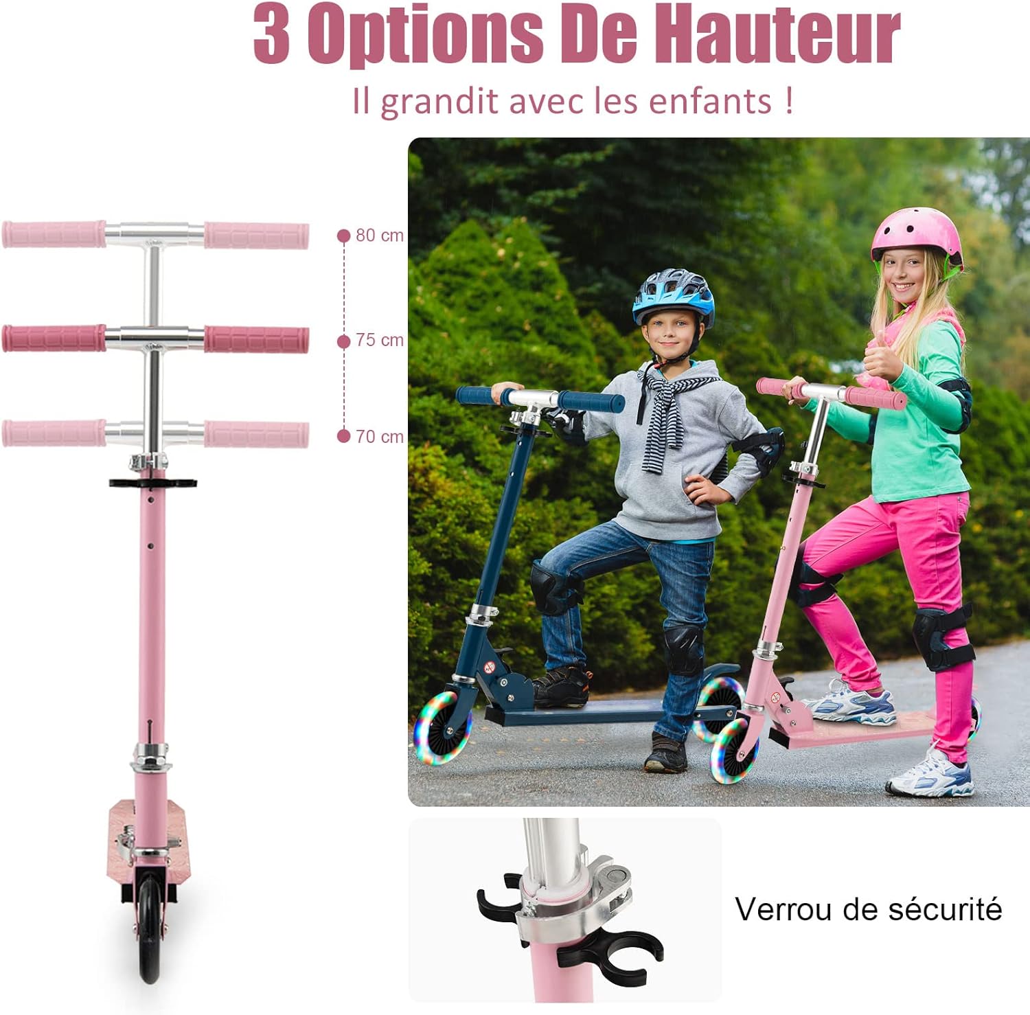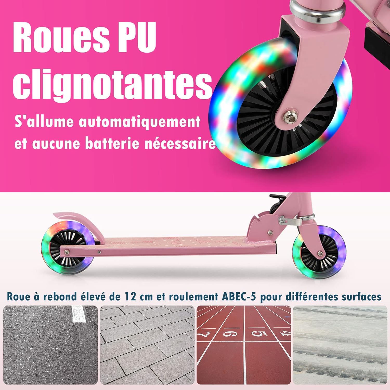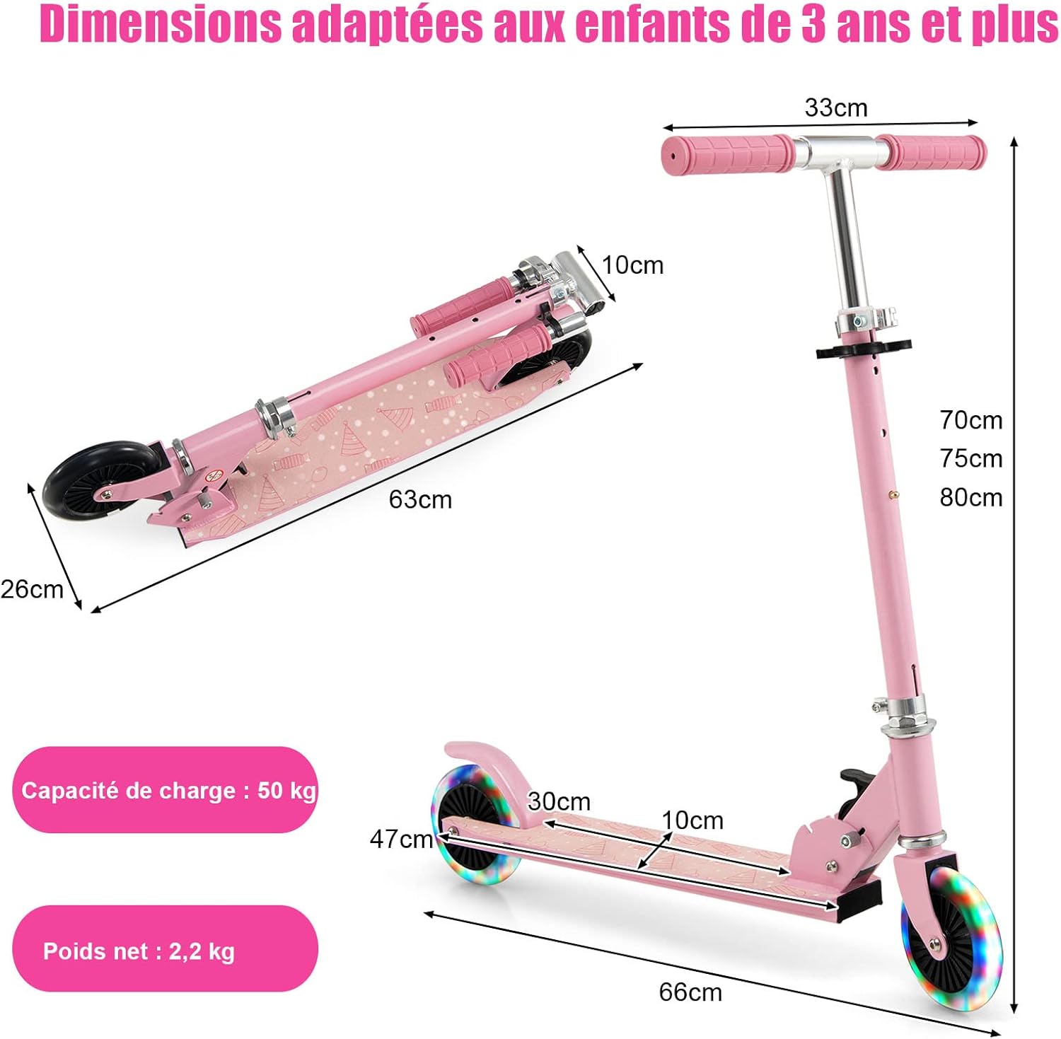 | Libellé | Trottinette pour enfants pliable avec 2 roues lumineuses, guidon réglable alu 3 hauteurs,rose |