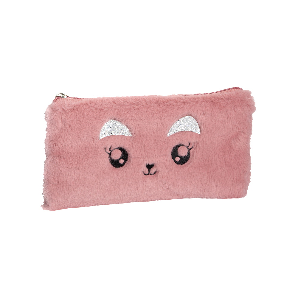 Détails : Trousse Fourre Tout plat - Touché peluche, décor en broderie et en matière pailletée - Fermeture à Glissière Dimensions : 22 x 12 cm Matière : Polyester Modèle : Chat Rose
