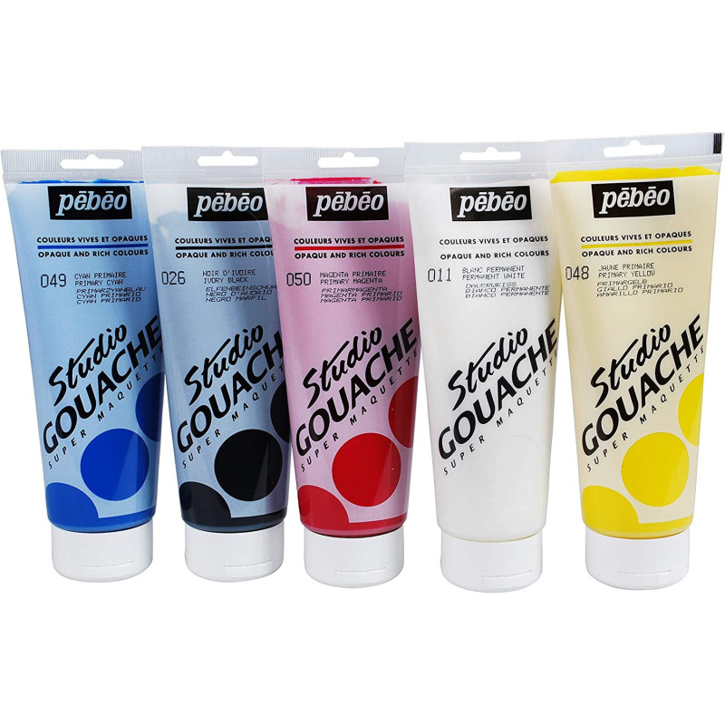 Tubes de peinture gouache - Beaux-arts - Couleurs primaires - Pébéo - Studio - 5x100ml