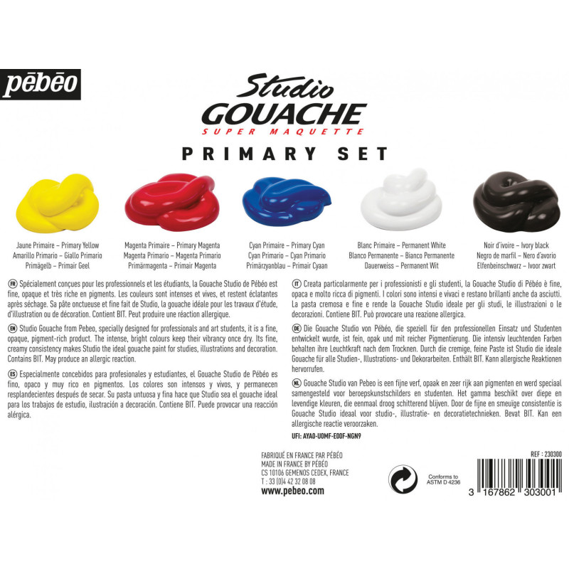 Libellé Tubes de peinture gouache - Beaux-arts - Couleurs primaires - Pébéo - Studio - 5x100ml