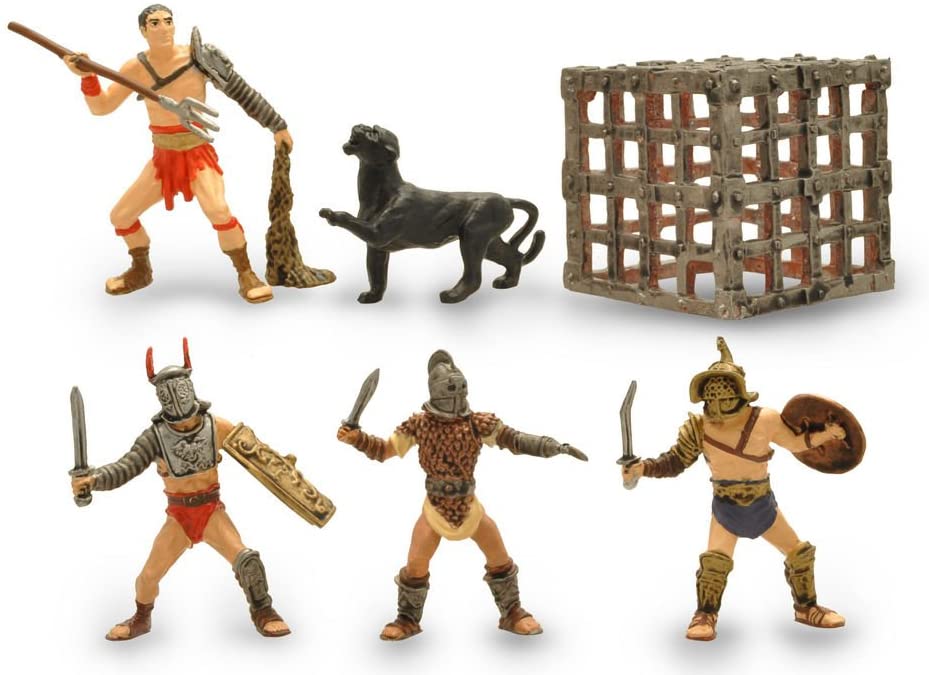 Ce tubo comprend 6 figurines qui permettront aux enfants d'imaginer des milliers d'aventures dans l'univers des gladiateurs.