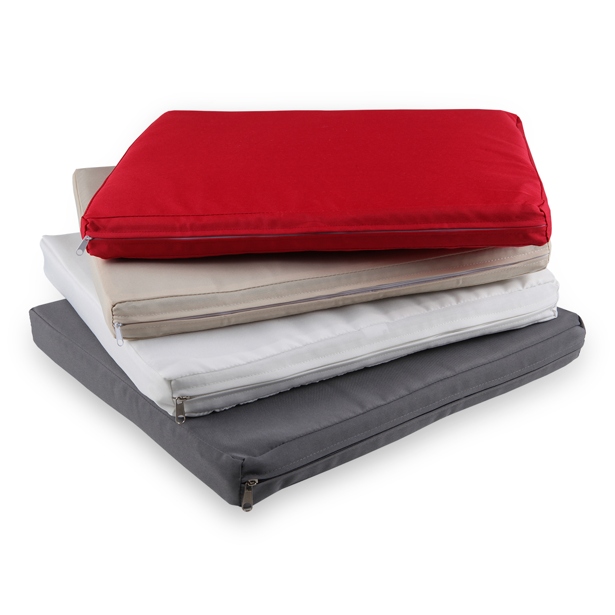 Housses de coussins à fermeture éclair, déperlants, 100% polyester.