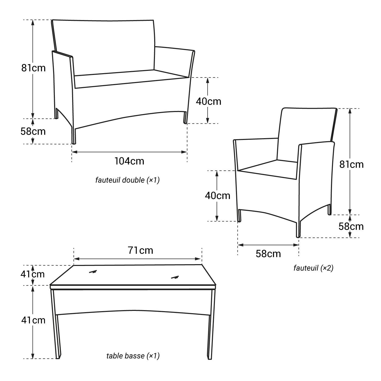 | Libellé | TULUM - Salon de jardin en résine tressée 4 places: 1 canapé, 2 fauteuils, 1 table basse - Coussins déperlants et déhoussables avec fermeture éclair |