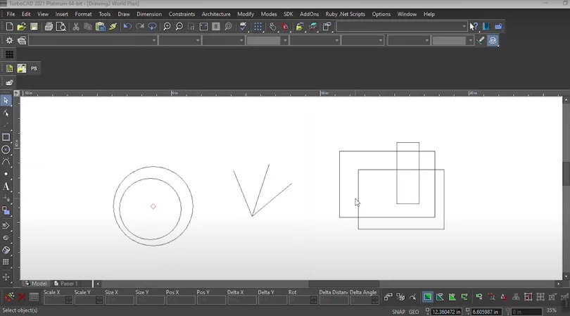 TurboCAD® Professional inclut également une interface de dessin 2D de type AutoCAD® avec une ligne de commande et un curseur d’entrée dynamique qui simplifie la transition depuis AutoCAD® 2022.