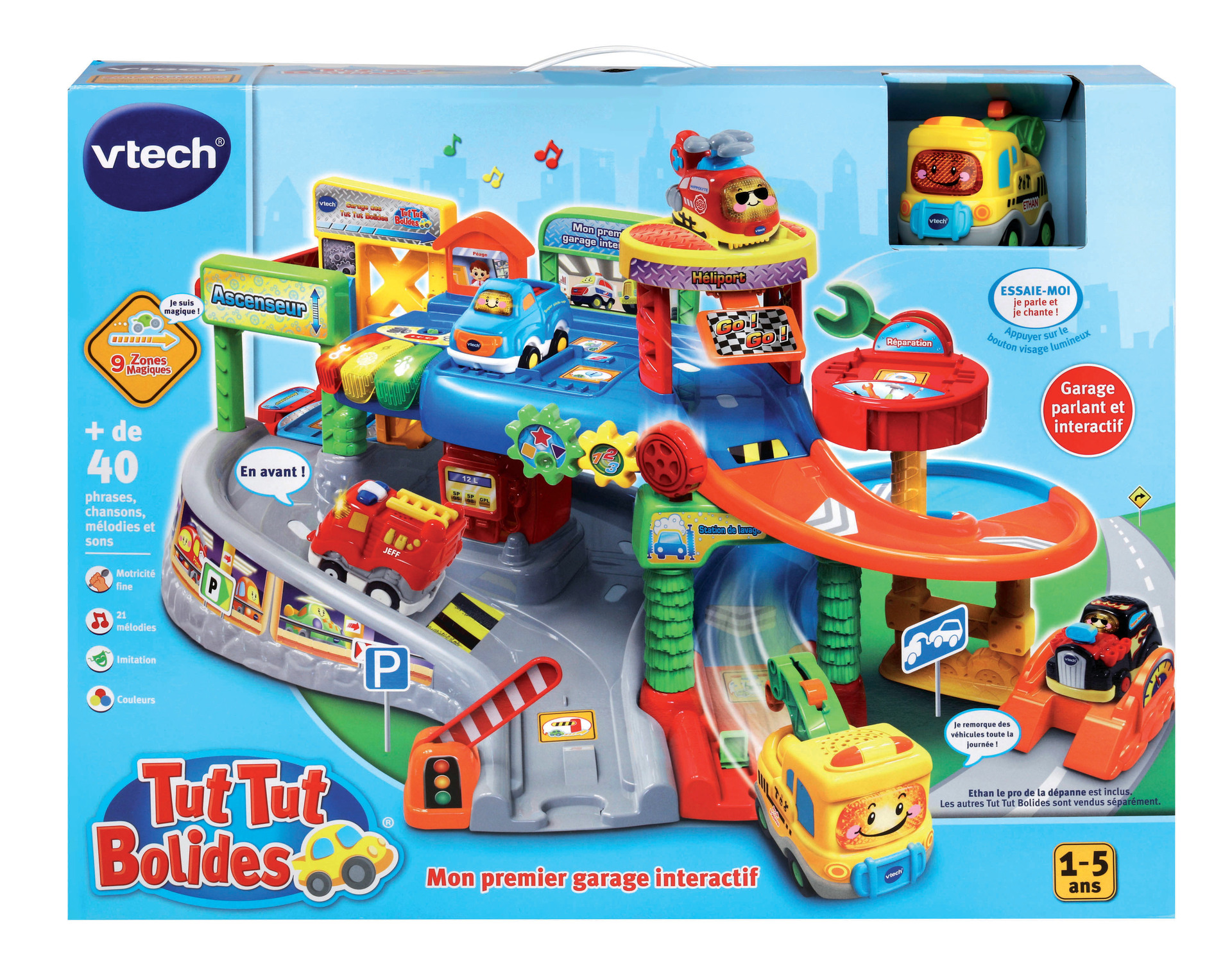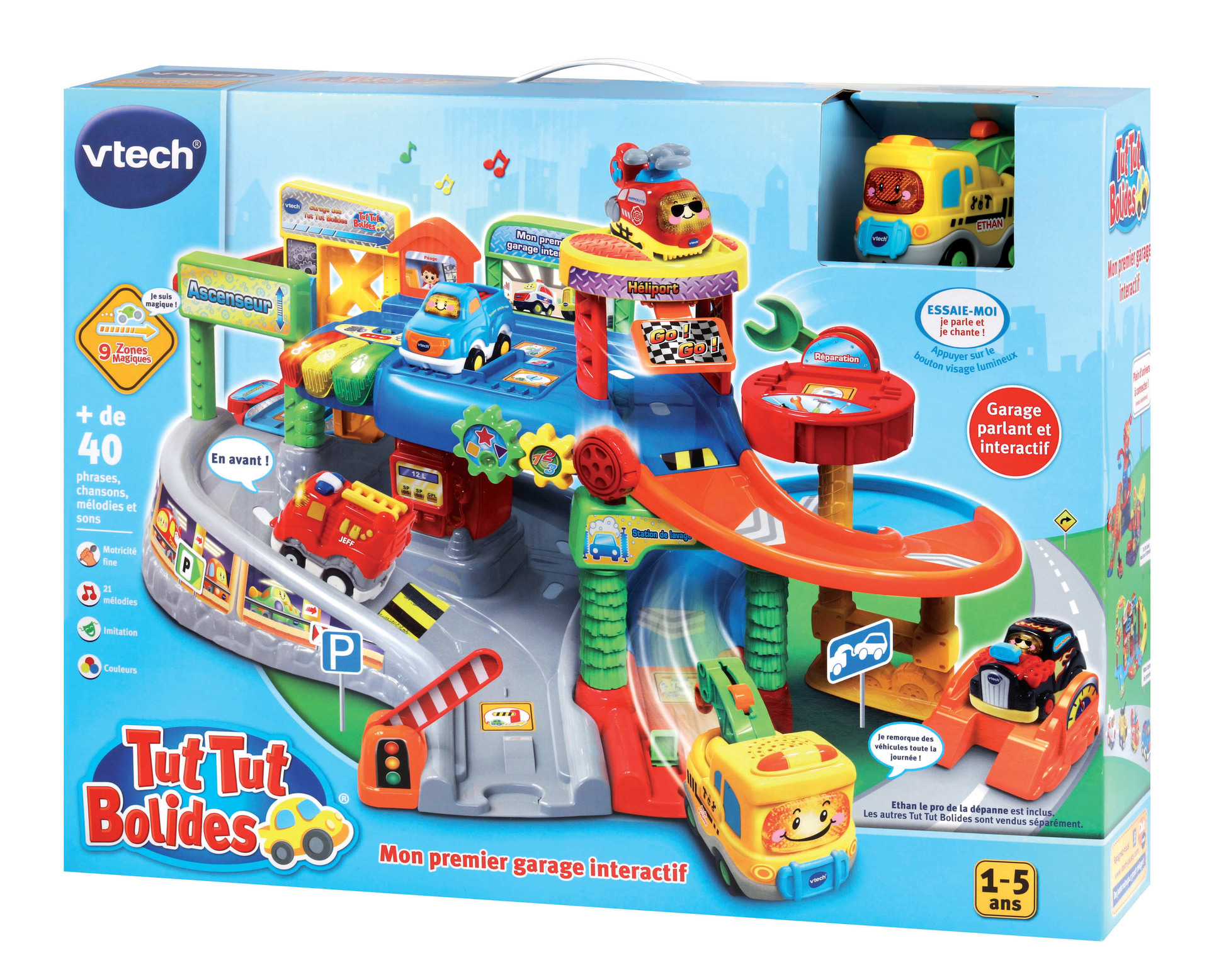 Le véhicule électronique et lumineux « Éthan le pro de la dépanne » parle, chante et possède sa propre personnalité. Grâce à son crochet, il peut remorquer les véhicules en panne !